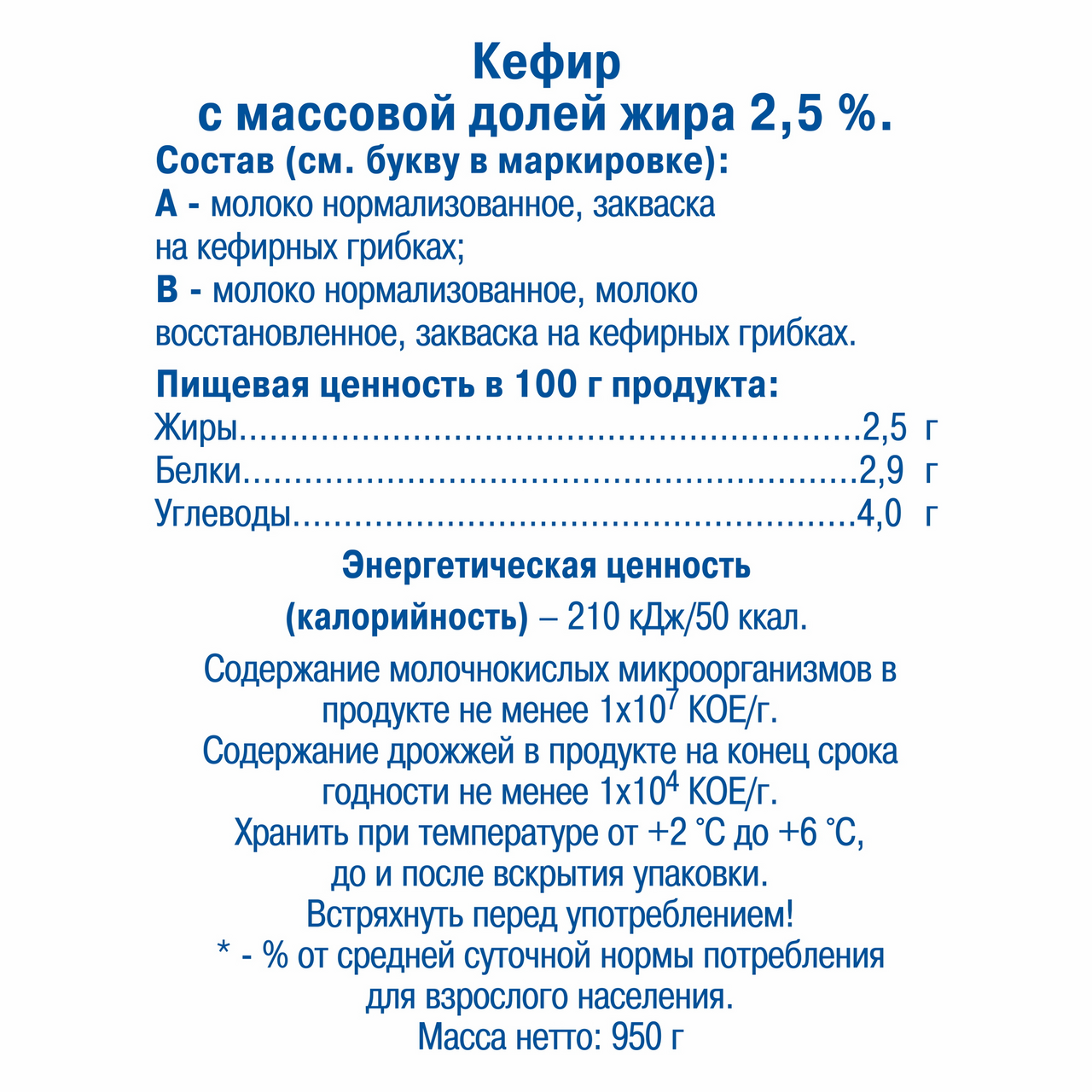 Кефир ВЕСЕЛЫЙ МОЛОЧНИК 2,5% – это полезный кисломолочный продукт, приготовленный из натуральных ингредиентов. Продукт благотворно влияет на микрофлору кишечника и работу органов пищеварения, очищает организм от шлаков, токсинов и регулирует обмен веществ.
