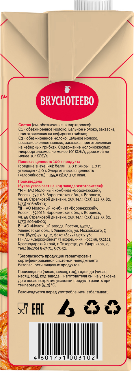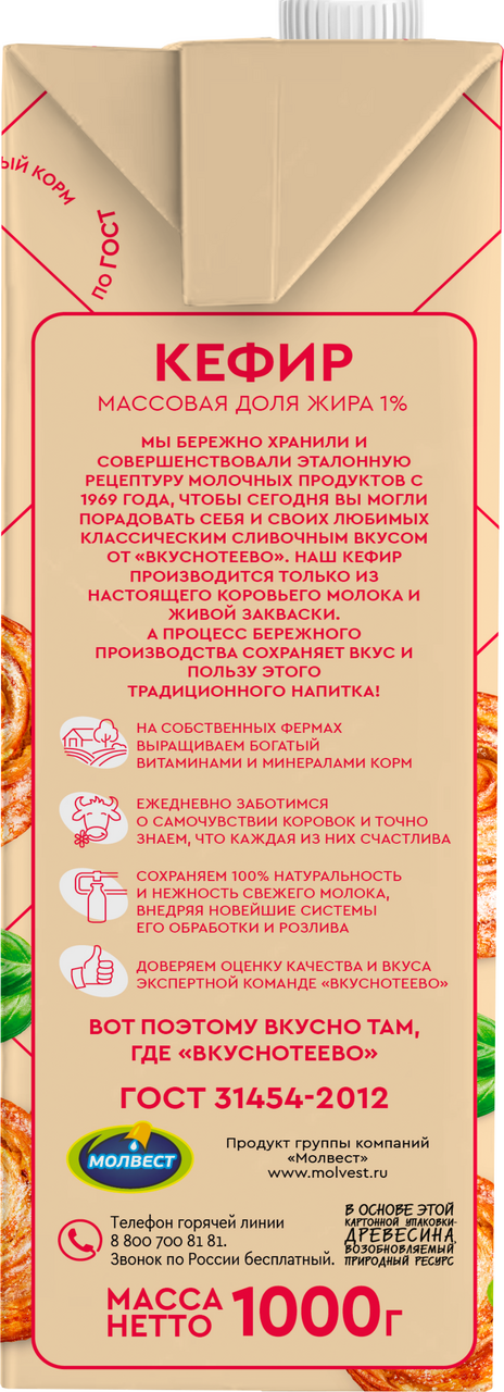 Кефир Вкуснотеево 1%, 1кг