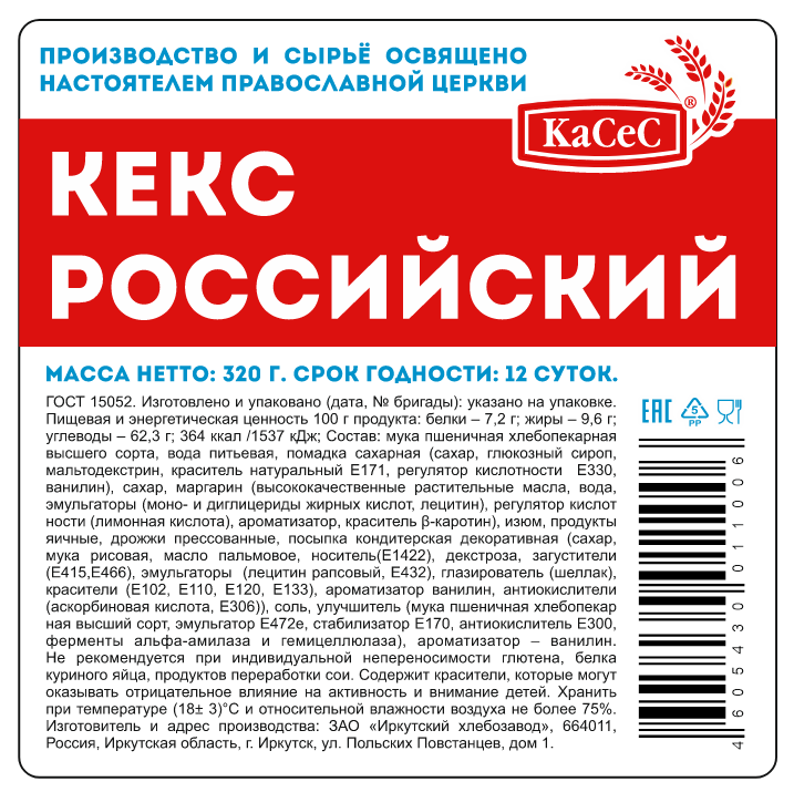 Мука пшеничная хлебопекарная высшего сорта, вода питьевая, помадка сахарная сахар, глюкозный сироп, мальтодекстрин, краситель натуральный Е171, регулятор кислотности Е330, ванилин, сахар, маргарин высококачественные растительные масла, вода, эмульгаторы моно- и диглицериды жирных кислот, лецитин, регулятор кислотности лимонная кислота, ароматизатор, краситель β-каротин, изюм, продукты яичные, дрожжи прессованные, посыпка кондитерская декоративная сахар, мука рисовая, масло пальмовое, носитель Е1422, декстроза, загустители Е415, Е466, эмульгаторы лецитин рапсовый, Е432, глазирователь шеллак, красители Е102, Е110, Е120, Е133, ароматизатор ванилин, антиокислители аскорбиновая кислота, Е306, соль, улучшитель мука пшеничная хлебопекарная, эмульгатор Е472е, стабилизатор Е170, антиокислитель Е300, ферменты альфа-амилаза и гемицеллюлаза, ароматизатор – ванилин.