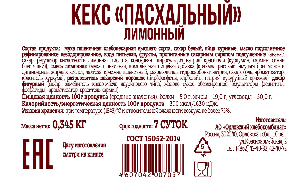 Кекс Пасхальный лимон, 345г – пышное и вкусное изделие. В состав входят только натуральные компоненты, без добавления ароматизаторов и консервантов. Тесто получается мягким и рассыпчатым. Сдобу можно употреблять с чаем или любыми другими горячими напитками. Она отлично подойдет в качестве десерта с соком или газировкой детям. Изделие считается праздничным, его готовят только на пасху. Выпекают по традиционной технологии, учитывая все стандарты качества.
