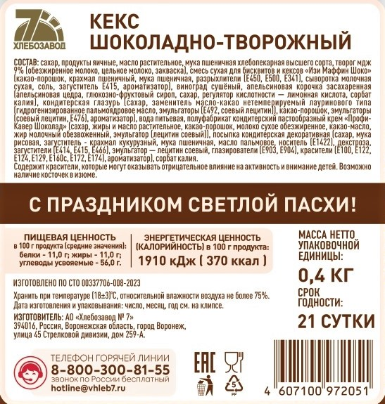Кекс Славна шоколадно-творожный, 400г