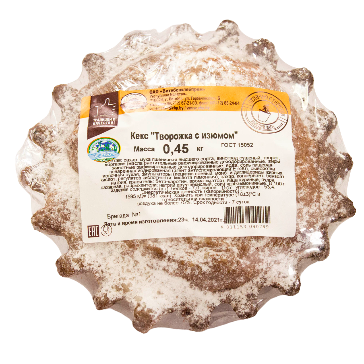 Кекс Каравай Придвинья Творожка с изюмом, 450г