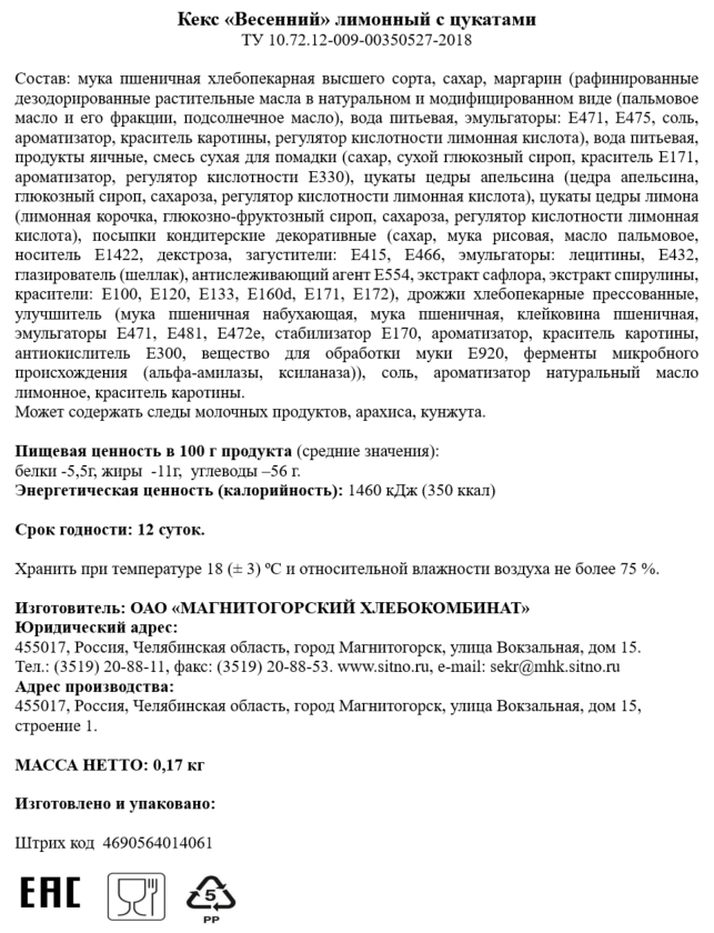 Нежная текстура, освежающий цитрусовый аромат и сладкие фруктовые нотки цукатов. Украшен глазурью и кондитерской посыпкой.