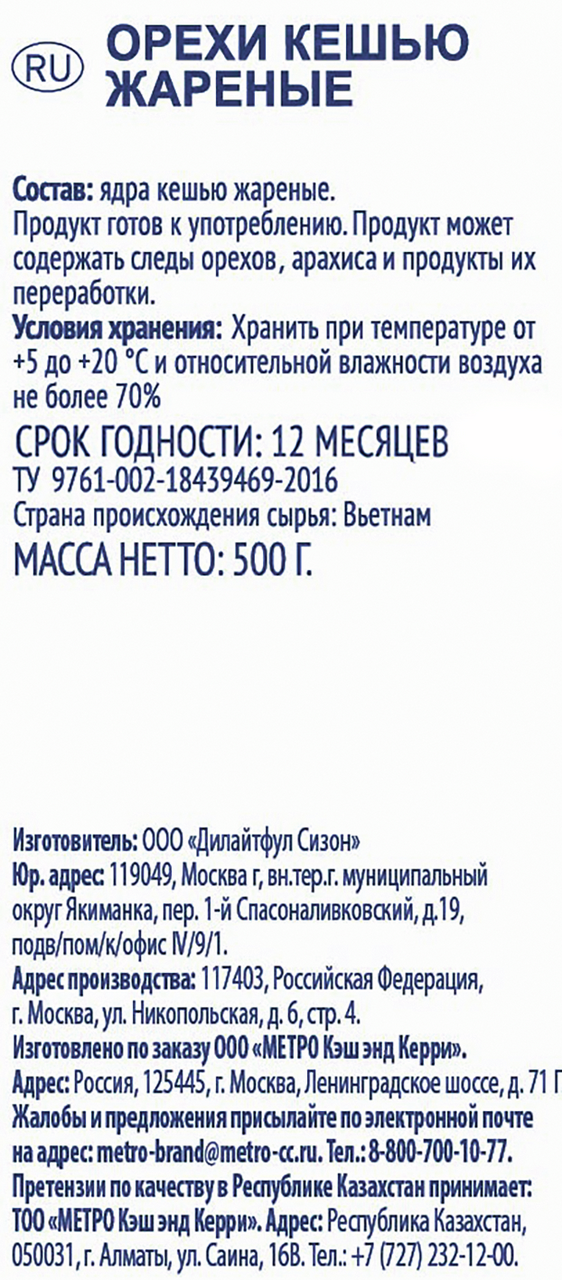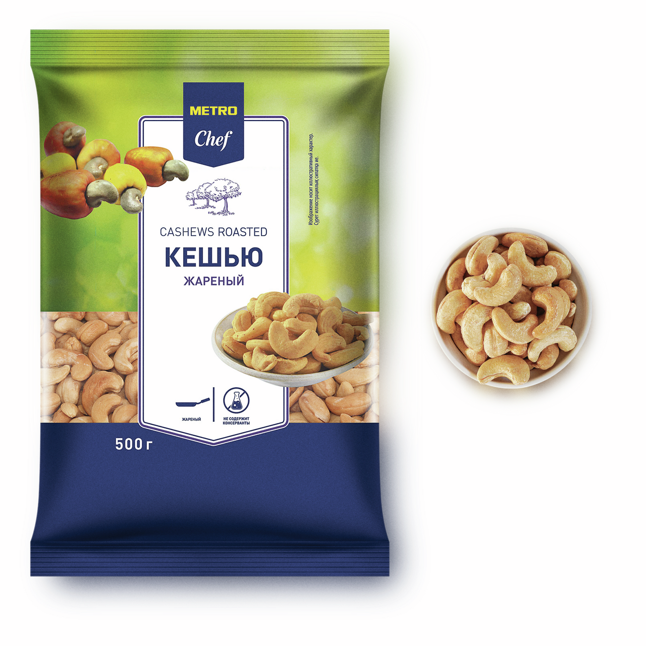 Слегка обжаренные кешью – экзотическое лакомство с нежным сливочным вкусом, маслянистой текстурой и легким ореховым ароматом. Они используются в кулинарии, служат простым и питательным перекусом. Польза орехов заключается в высоком содержании белка, магния, витаминов группы Е, В и К, ненасыщенных жирных кислот. Продукт обладает антидиабетическими свойствами, предотвращает осложнения при диабете. Он является природным афродизиаком, способствует укреплению защитных сил организма, положительно воздействует на органы дыхания. Кешью упакованы в плотный пакет, который сохраняет их свойства и вкусовые качества. Рекомендованная диетологами суточная норма орехов – 30 г. Выпуская продукцию под собственными торговыми марками METRO, мы стремимся максимально удовлетворить потребности наших клиентов. Наша цель - понять, какой ассортимент для них актуален и предложить его по привлекательной цене. Мы также внимательно изучаем тенденции рынка, чтобы быть в курсе последних трендов и своевременно предлагать решения под собственными торговыми марками в соответствии с ними.