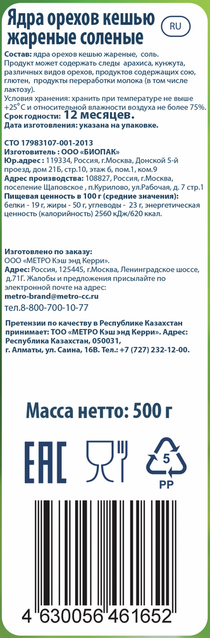 Подсоленные и обжаренные ядра орехов кешью – натуральный продукт с нежным деликатным вкусом. Они надолго утоляют голод и используются в качестве добавки в десерты, салаты, вторые блюда. Являясь источником растительного белка, ненасыщенных жирных кислот, калия и меди, орехи выступают природным афродизиаком и способствуют наступлению беременности. Ежедневное употребление 30 граммов продукта поможет укрепить иммунитет, предотвратит развитие атеросклероза, восстановит работоспособность. Отборные ядра с сочной волокнистой мякотью упакованы в плотный пакет, который защищает от влаги и других внешних факторов. Выпуская продукцию под собственными торговыми марками METRO, мы стремимся максимально удовлетворить потребности наших клиентов. Наша ц��ль - понять, какой ассортимент для них актуален и предложить его по привлекательной цене. Мы также внимательно изучаем тенденции рынка, чтобы быть в курсе последних трендов и своевременно предлагать решения под собственными торговыми марками в соответствии с ними.