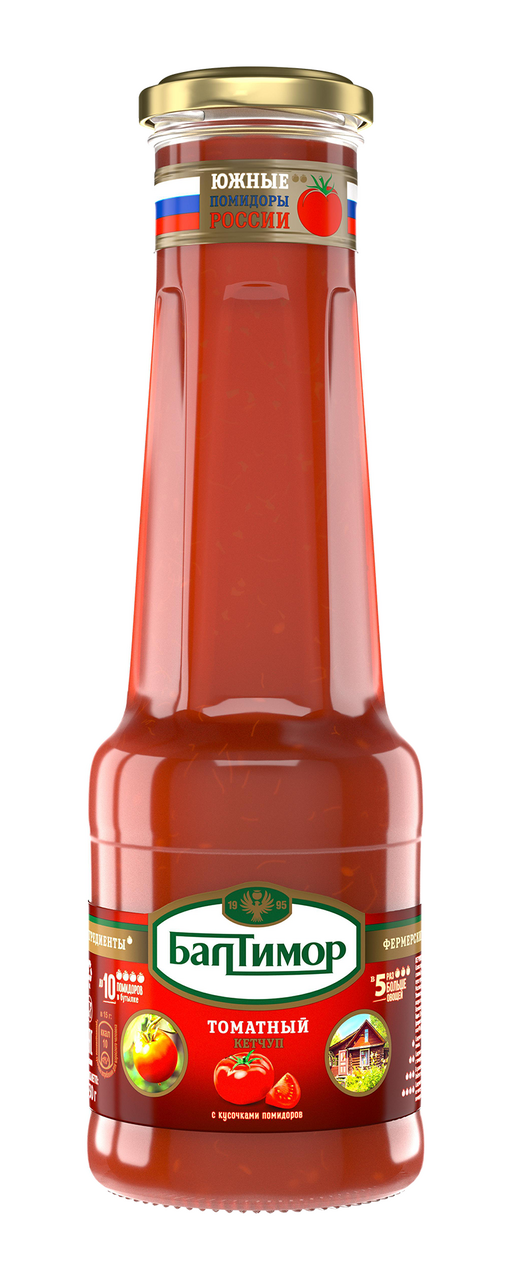 Кетчуп Балтимор томатный ГОСТ, 530г - густой кетчуп из отборных спелых помидоров с тщательно подобранной смесью приправ. Кетчуп приготовлен только из натуральных ингредиентов. Он отличается насыщенным томатным вкусом и подходит к различным гарнирам и простым блюдам из всех сортов мяса и рыбы. Без консервантов, ароматизаторов, ГМО и красителей.