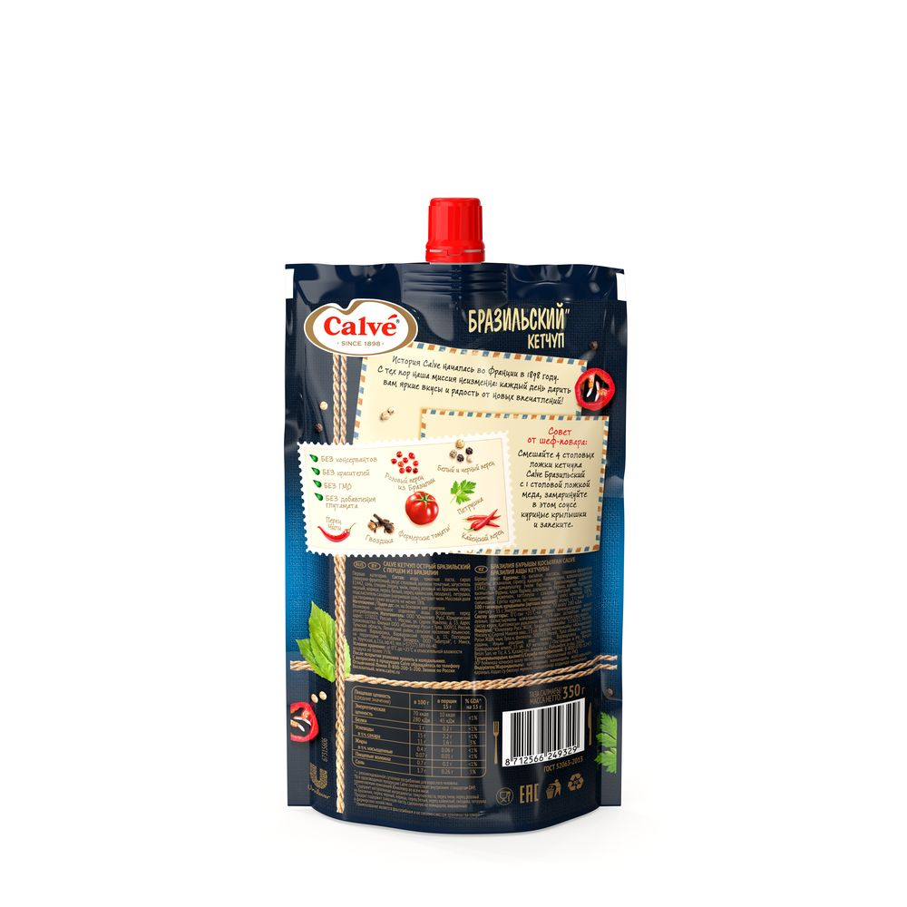 Палитра кетчупов Calve создана cпециально для тех, кто любит разнообразие. Каждый найдёт для себя тот самый вкус! А вы уже успели попробовать кетчуп Calve Бразильский? Вкус классического томатного соуса стал еще лучше и многогранней. Особую пикантность вкусу придаёт сочетание розового и белого перцев в составе. Густой, ароматный, с насыщенным вкусом этот кетчуп идеально дополнит блюда из мяса или птицы, а также будет отлично сочетаться с абсолютно любым гарниром. Почувствуйте за своим обеденным столом энергию карнавала и всю силу латиноамериканского солнца! Кетчуп Бразильский от Сalve – это понятный состав с натуральными ингредиентами и отсутствием ГМО, консервантов, ароматизаторов, красителей и без добавления глутамата. Его удобная упаковка дой-п��к позволит вам хранить соус в любом положении и использовать его до самой последний капли. Настало время добавить настоящей перчинки в ваши блюда. Calve – это вкусно на всех языках! Calve - это международная марка с большим разнообразием вкусов. История Calve началась во Франции в 1898 году. C тех пор миссия Calve неизменна: каждый день дарить вам новые вкусы и яркость впечатлений! Мы открываем для себя мир и знакомимся с кухней разных стран в пои
