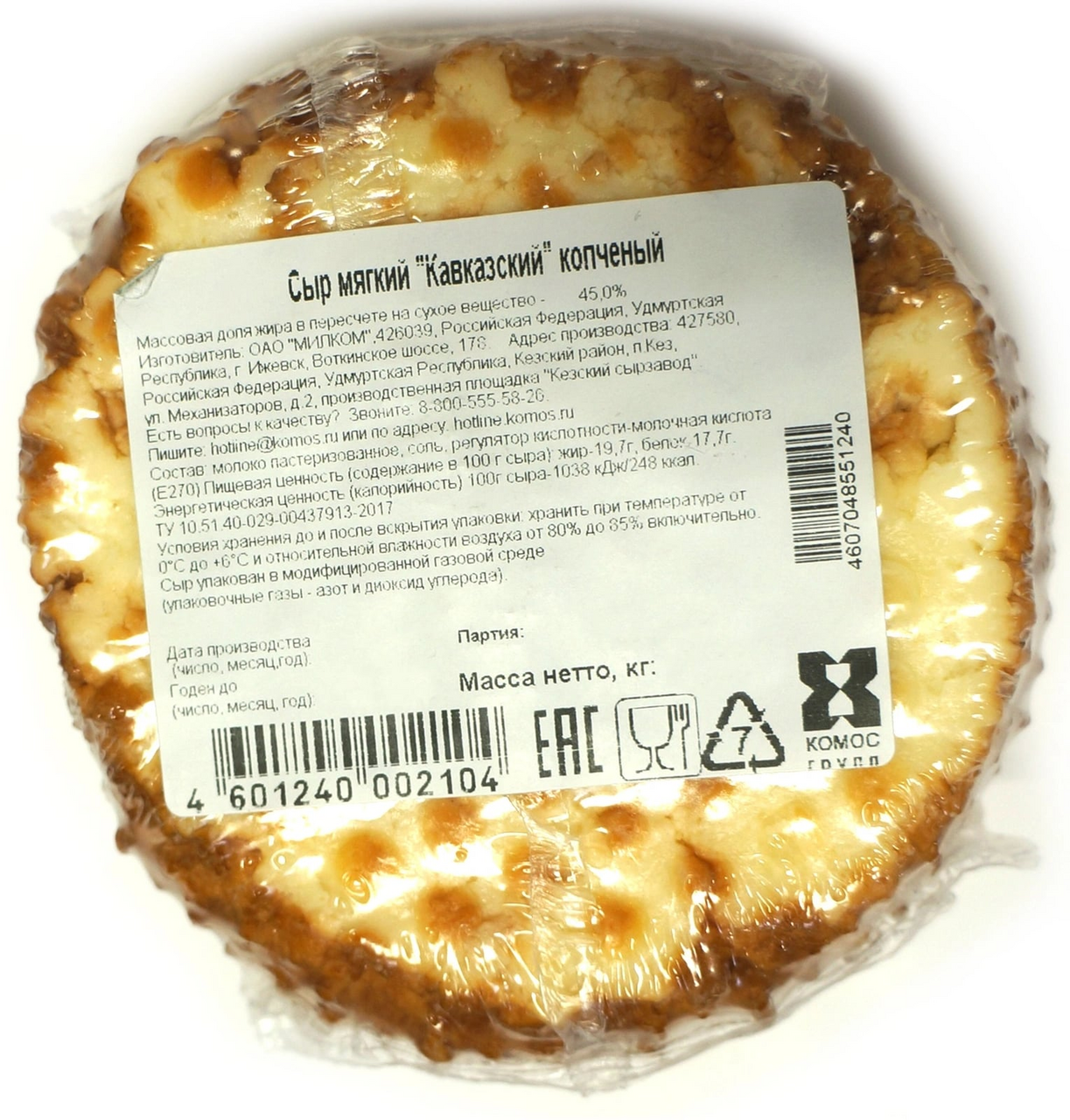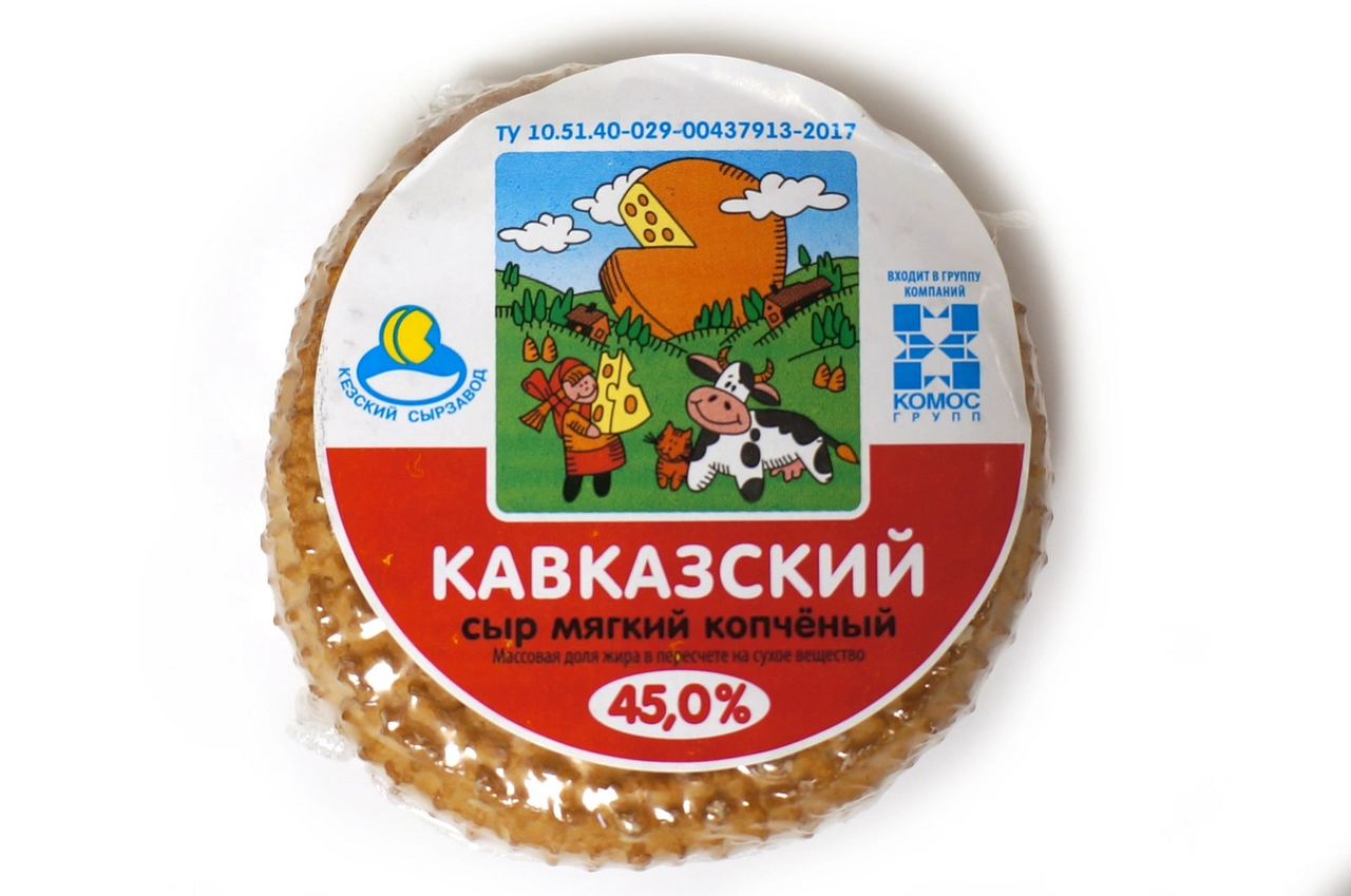Сыр мягкий Кавказский копченый бренда "Кезский сырзавод" изготовлен из натурального, свежего молока по традиционной рецептуре, обладает пикантным вкусом. Станет прекрасным дополнением к Вашему завтраку и подарит заряд бодрости на весь день, благодаря витаминам и аминокислотам содержащимся в нем.
