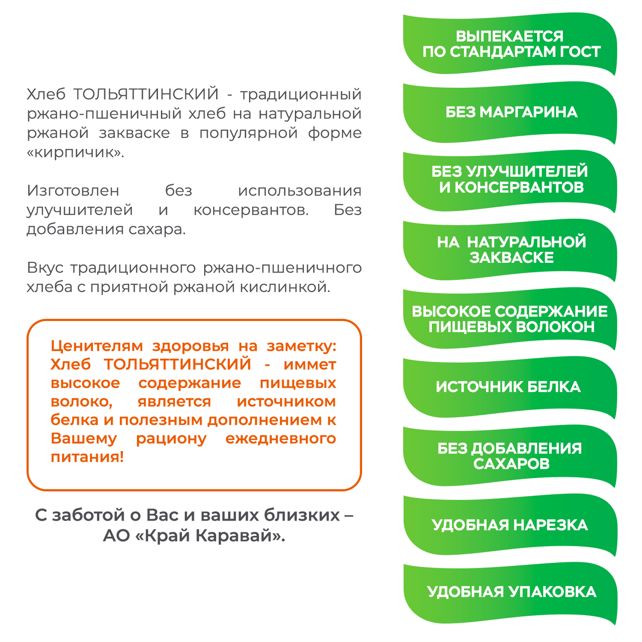 Хлеб Край Каравай Тольяттинский в нарезке, 700г