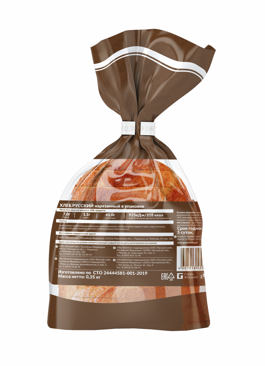 Хлеб Русский хлеб Русский ржано-пшеничный нарезанный, 350г