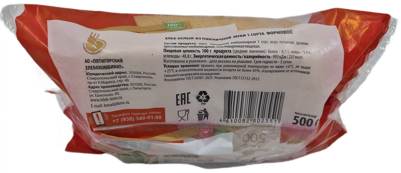 Мука пшеничная хлебопекарная 1 сорт, вода питьевая, дрожжи прессованные хлебопекарные, соль поваренная пищевая.