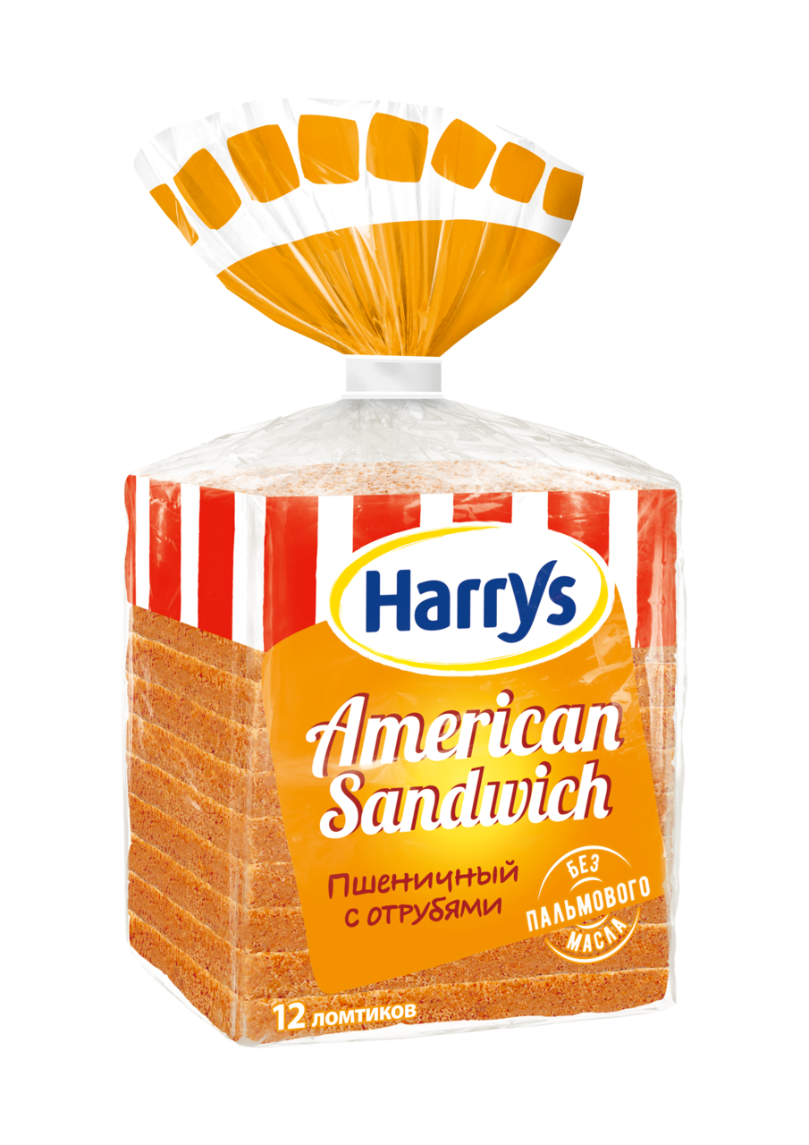 Пшеничный хлеб с отрубями Harry's American Sandwich – идеальная основа для любителей вкуснейших и полезных сэндвичей и тостов. В основе рецептуры – пшеничная мука высшего сорта, обогащённая пшеничными отрубями - источником клетчатки. Квадратные ломтики хлеба, подрумяненные в тостере, станут прекрасной основой для классического тоста, сэндвича или канапе с разнообразными начинками и сделают каждый день вкуснее.