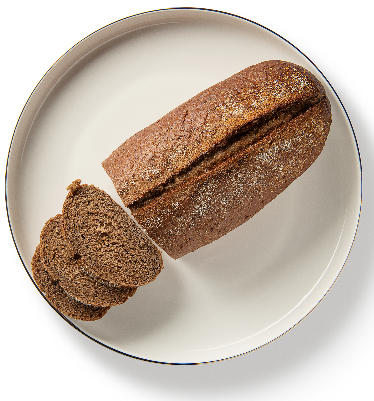 Свежий затемнённый пшенично-ржаной хлеб на заварке с добавлением кориандра и тмина. Богатый насыщенный сладко-пряный вкус, яркий солодовый аромат, нежная структура мякиша. Широкий продольный надрез, хрустящая корочка, декорированная легкой вуалью из манной крупы. Без усилителей вкуса, без ароматизаторов.