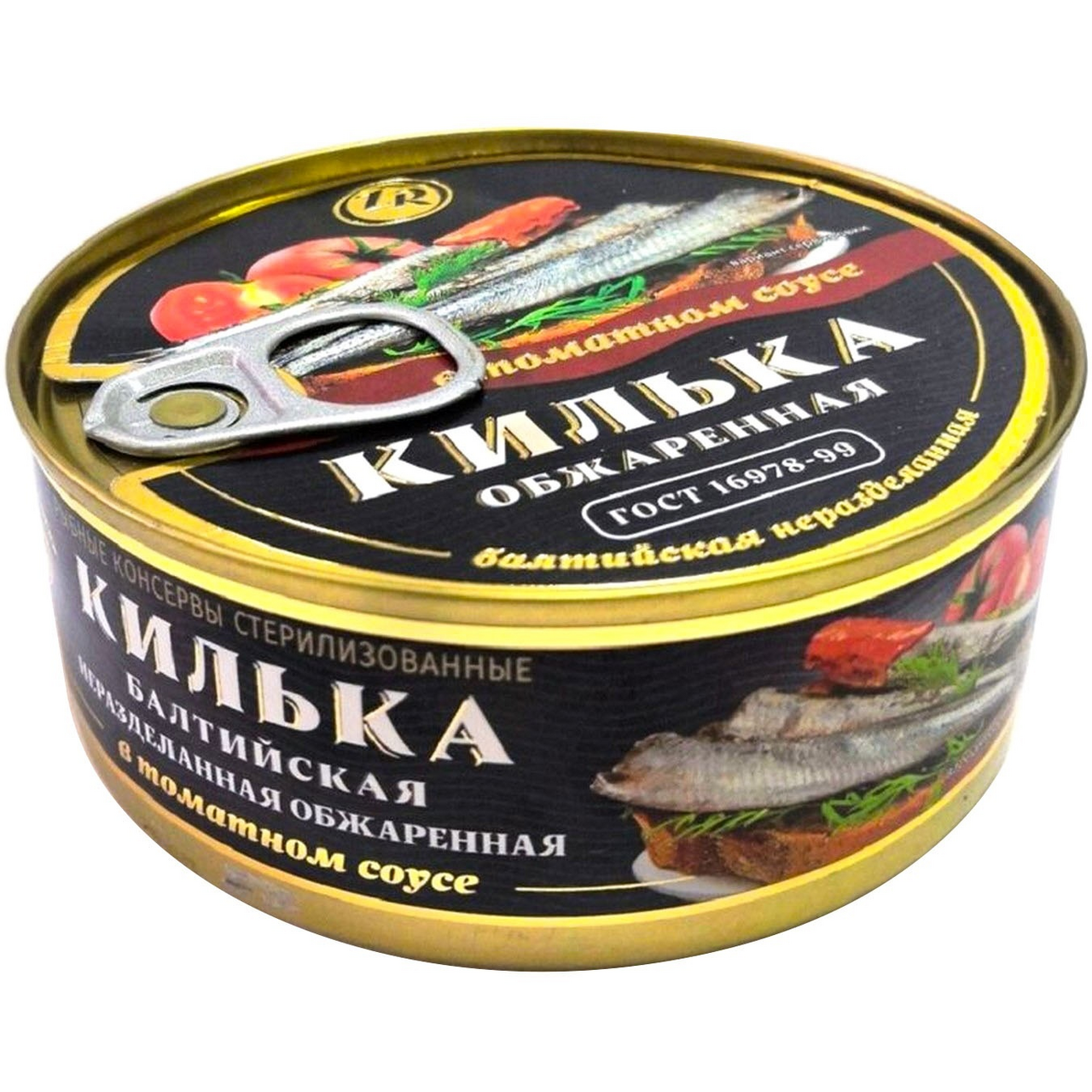 Неразделанная килька, обжаренная в томатном соусе, Балтийская марки Золотистая рыбка готовится из свежей, не претерпевшей заморозку и транспортировку рыбы. А значит, она сохраняет все вкусовые качества, которые вы непременно оцените по достоинству. Такая закуска будет хороша в чистом виде или дополненная ломтиком черного хлеба. Кроме того, из кильки в томатном соусе получаются необыкновенно ароматные супы.