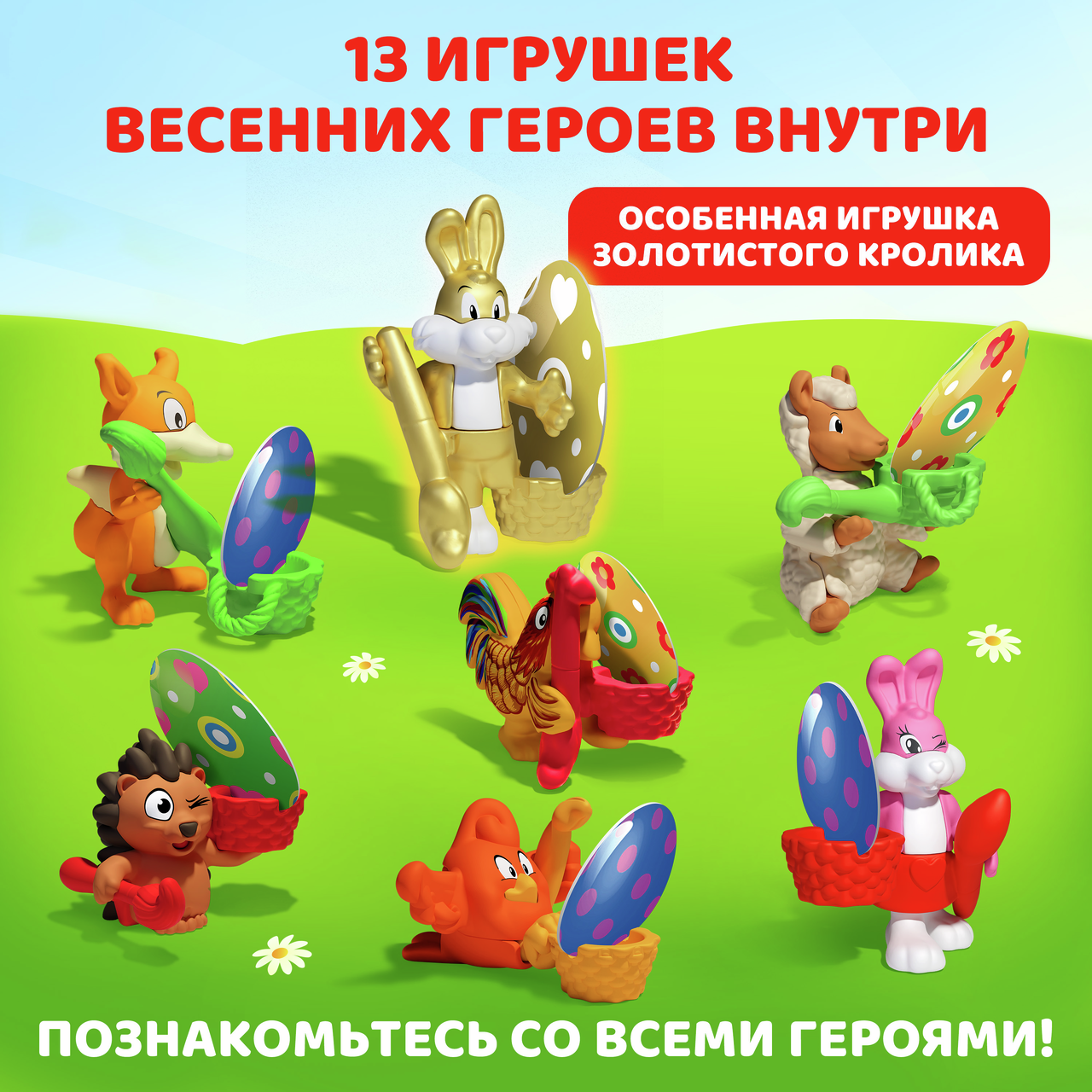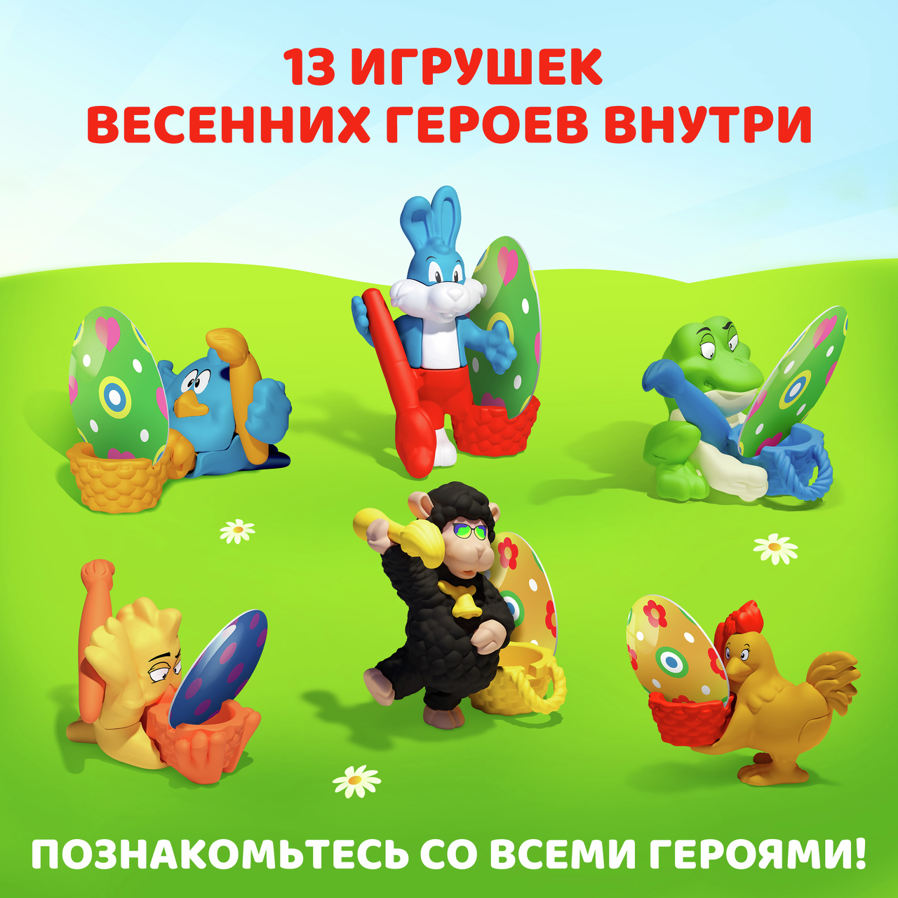 Kinder Surprise Яйцо шоколадное Весна 20 г – это вкусное лакомство, которое понравится детям всех возрастов. Взрослые также не останутся равнодушными. Десерт в форме куриного яйца состоит из двух видов шоколада – молочного (верхнее покрытие) и белого (внутреннее покрытие). Внутри него находится небольшая оригинальная фигурка. Такое лакомство может выступить в качестве самостоятельного перекуса, а также дополнить чай, сок и молоко. Продукт помещен в фольгированную бумагу, которая не только надежно защищает продукт от воздействия внешних факторов и помогает сохранить его органолептические свойства. На ней отображена вся необходимая потребителю информация о товаре. Ребенку не составит труда самостоятельно открыть угощение, поэтому он может взять его на прогулку или учебу.