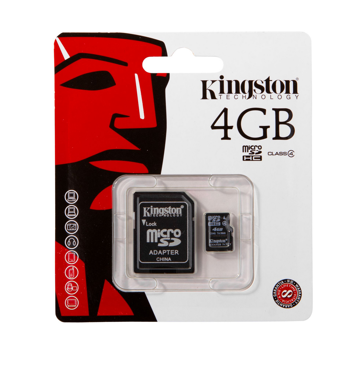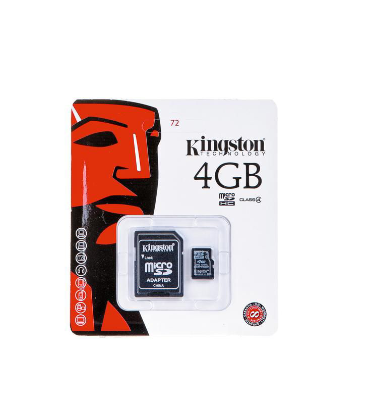 Карта памяти Kingston Micro SD, 4 Гб. Высокоскоростная карта памяти формата microSDHC класса 4. Совместимы только с устройствами, поддерживающими высокоскоростные карты (надпись microSDHC, miniSDHC или SDHC). Несовместимы с устройствами поддерживающими форматы SD, MiniSD, MicroSD. Полная совместимость со стандартом SD 2.0. Высокая емкость. Пожизненная гарантия. Адаптер для SDHC входит в комплект.