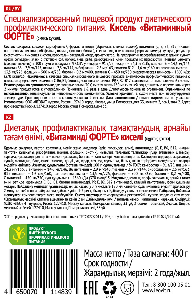 Кисель Леовит Форте витаминный, 400г