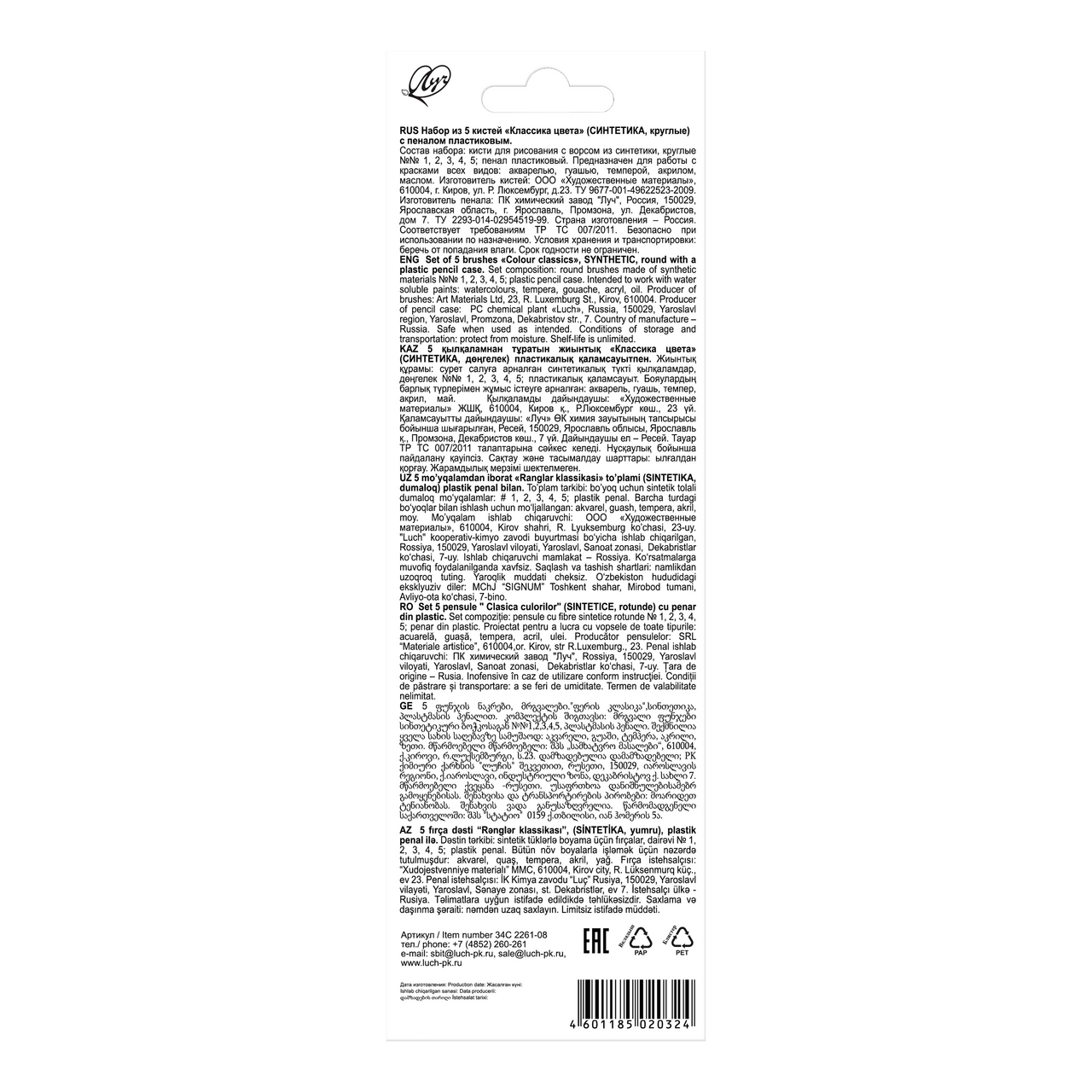 Кисти Луч Классика синтетика с пеналом, 5шт