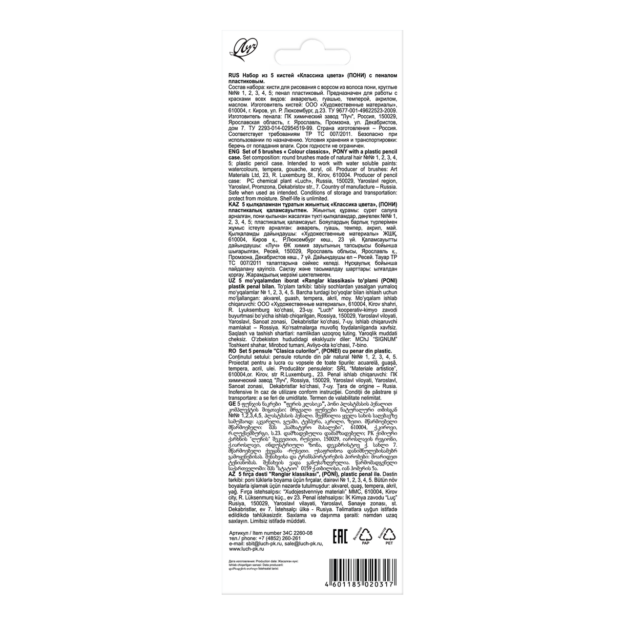 Кисти Луч пони с пеналом, 5шт