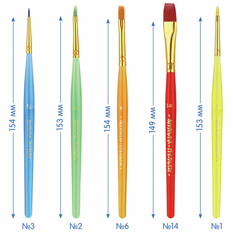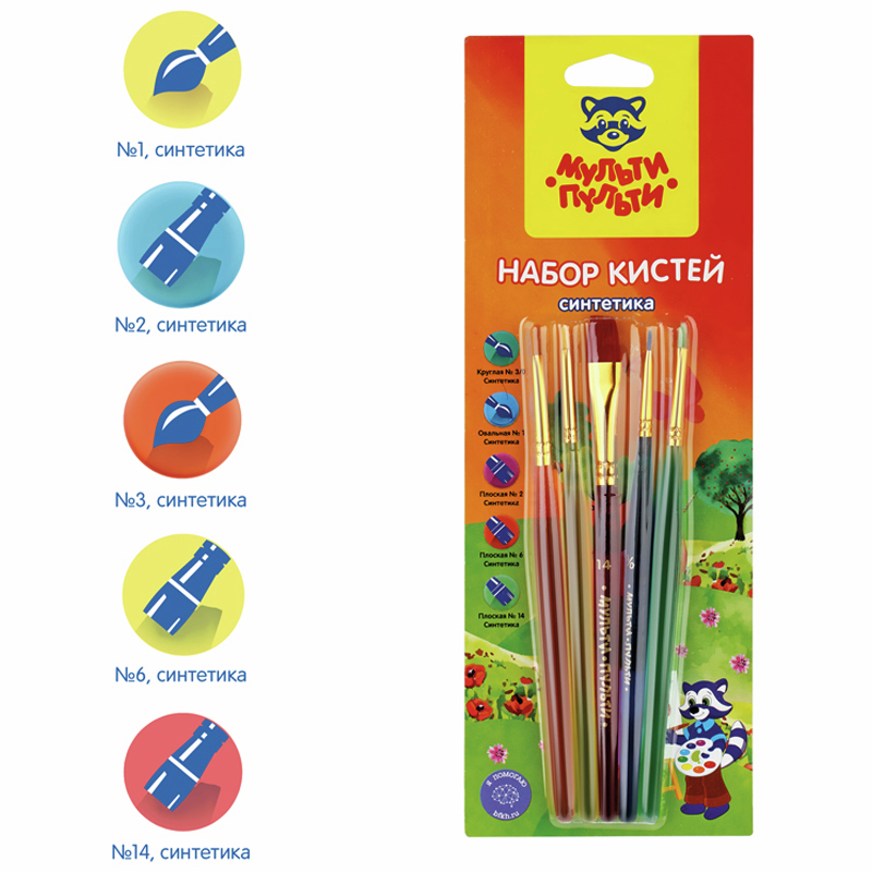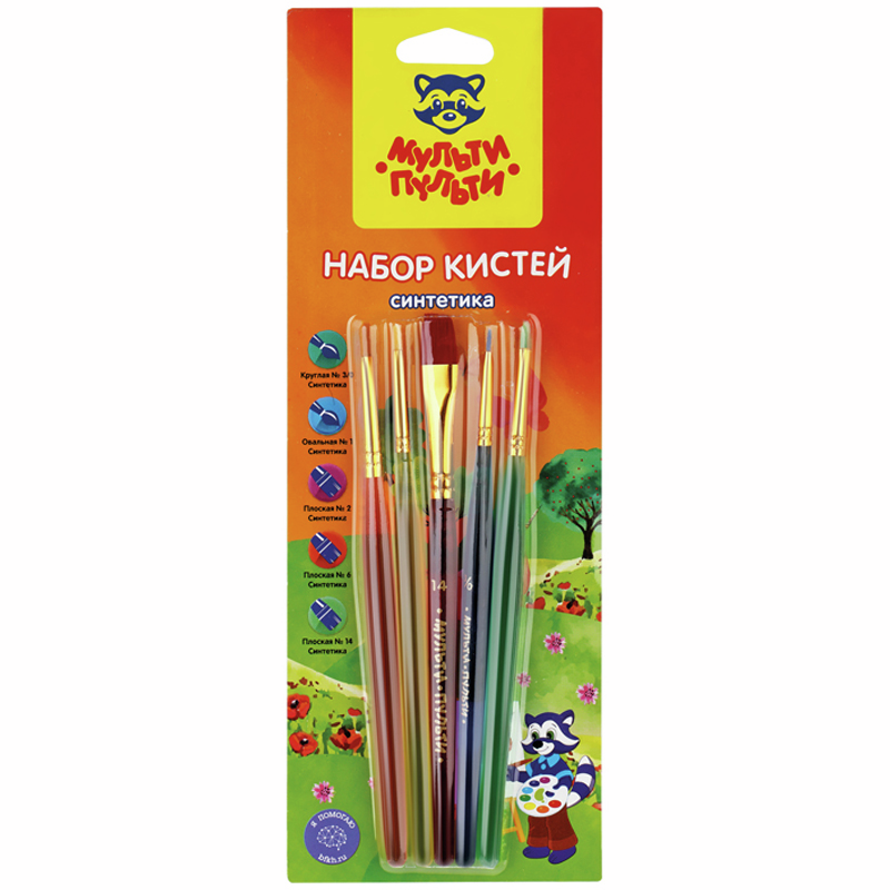 Кисти Мульти-Пульти синтетические круглые 3 плоские 2 6 14 овальные 1