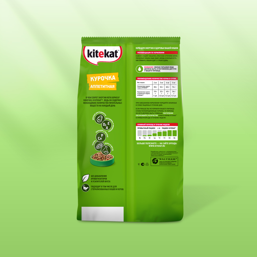 Любимая курочка – вкусный и питательный обед! Еще больше сил и энергии – это то, что нужно настоящим исследователям! Ведь Kitekat – это полноценная еда, которая содержит все необходимое для вашей кошки. Kitekat приготовлен из таких же качественных продуктов, что вы используете дома для своих близких: мясных ингредиентов, овощей, растительного масла и круп. Kitekat знает, как их правильно сбалансировать для поддержания энергии и здоровья вашего кота.