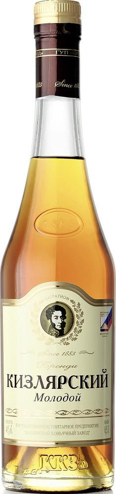 Бренди Кизлярский Молодой - это спиртной напиток, с выдержкой 18 месяцев и уникальным мягким медным цветом с янтарным отливом. Вкус содержит теплые акценты южных пряностей, ванили, спелой вишни, а аромат яркий, с доминирующими тонами изюма, ванили, печеной груши и пряностей. Бренди "Кизлярский" Молодой можно рекомендовать людям, с ограниченным бюджетом. Напиток обладает насыщенным согревающим вкусом и лаконичным приятным ароматом. ��ренди также подходит для коктейлей, поскольку прекрасно сочетается с фруктовыми соками и льдом. Чрезмерное употребление алкоголя вредит вашему здоровью.