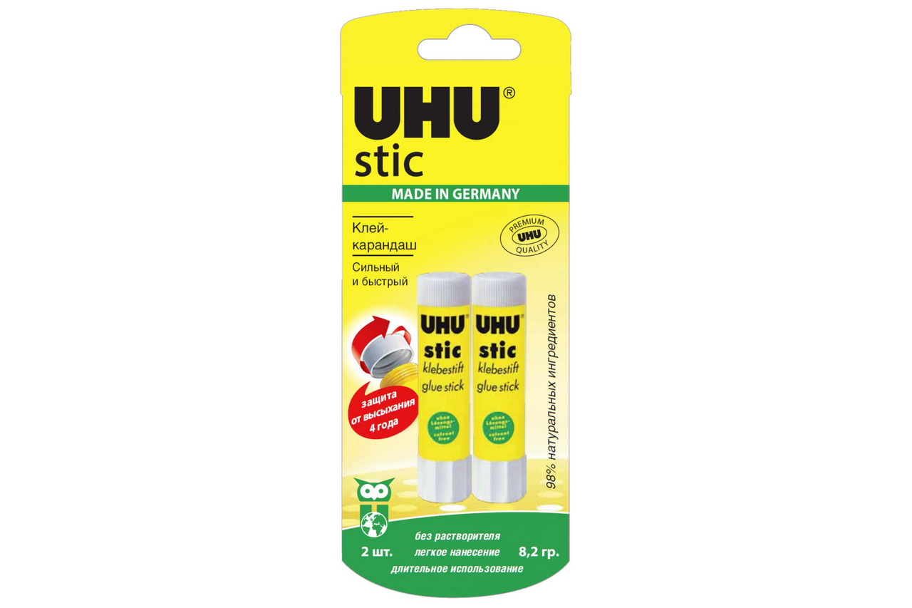 Клей-карандаш UHU 8,2 гр. 2 шт. 60/2-B надежно склеивает бумагу, текстиль, картон. Продукт экономичен в использовании. Специальный уникальный колпачок защищает изделие от высыхания. Клей-карандаш легко наносится и распределяется расходуется.