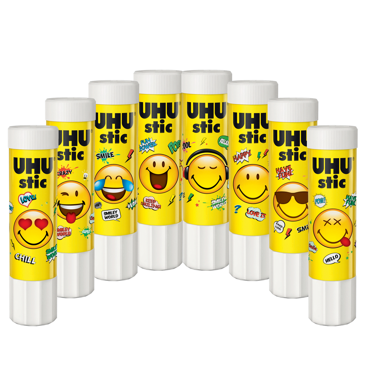 UHU SMILE лимитированная коллекция в 4х дизайнах, с использованием элементов тренда ИМОДЖИ. Уникальный, завинчивающийся колпачок надежно предохраняет клей от высыхания в течение четырех лет. Клей легко наносится и распределяется по поверхности, оставляя тонкий и ровный слой. Экономичный расход. Не деформирует бумагу, безвреден, без запаха, смывается водой.