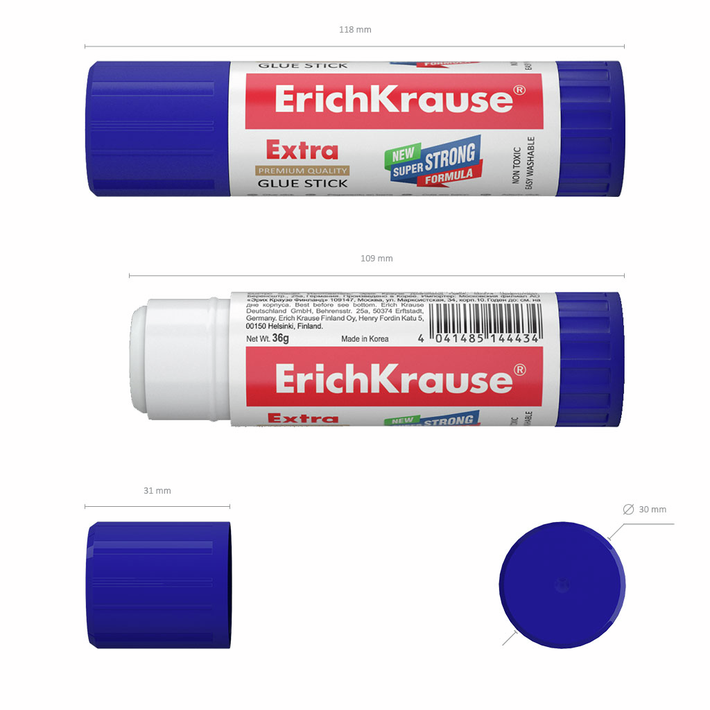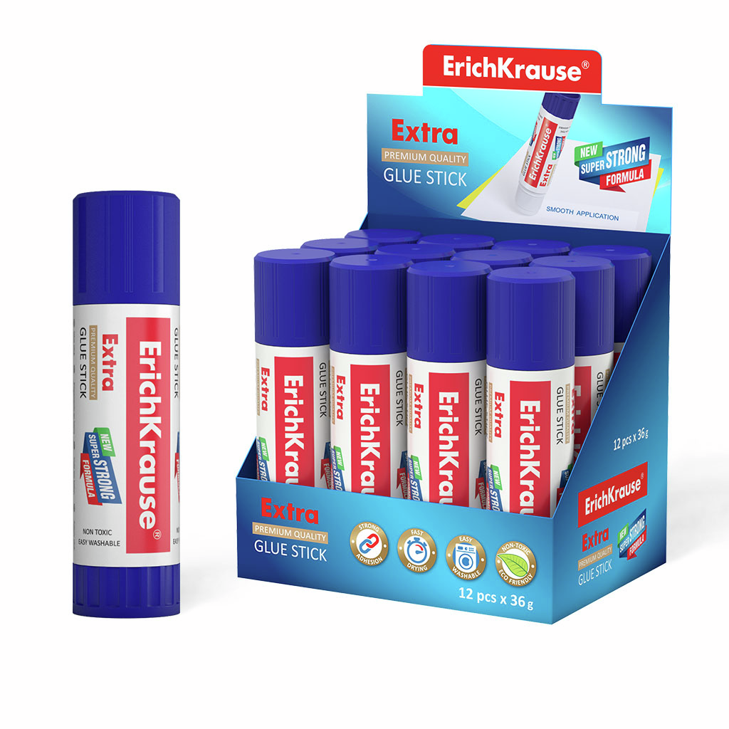 Клей-карандаши Erich Krause 36г, 2шт c новой суперсильной формулой на PVP основе с экономичным расходом, максимально быстрым и надежным склеиванием. Легко смывается водой. Не токсичен. Не содержит растворителя. Морозостоек. Подходит для бумаги, картона и ткани.