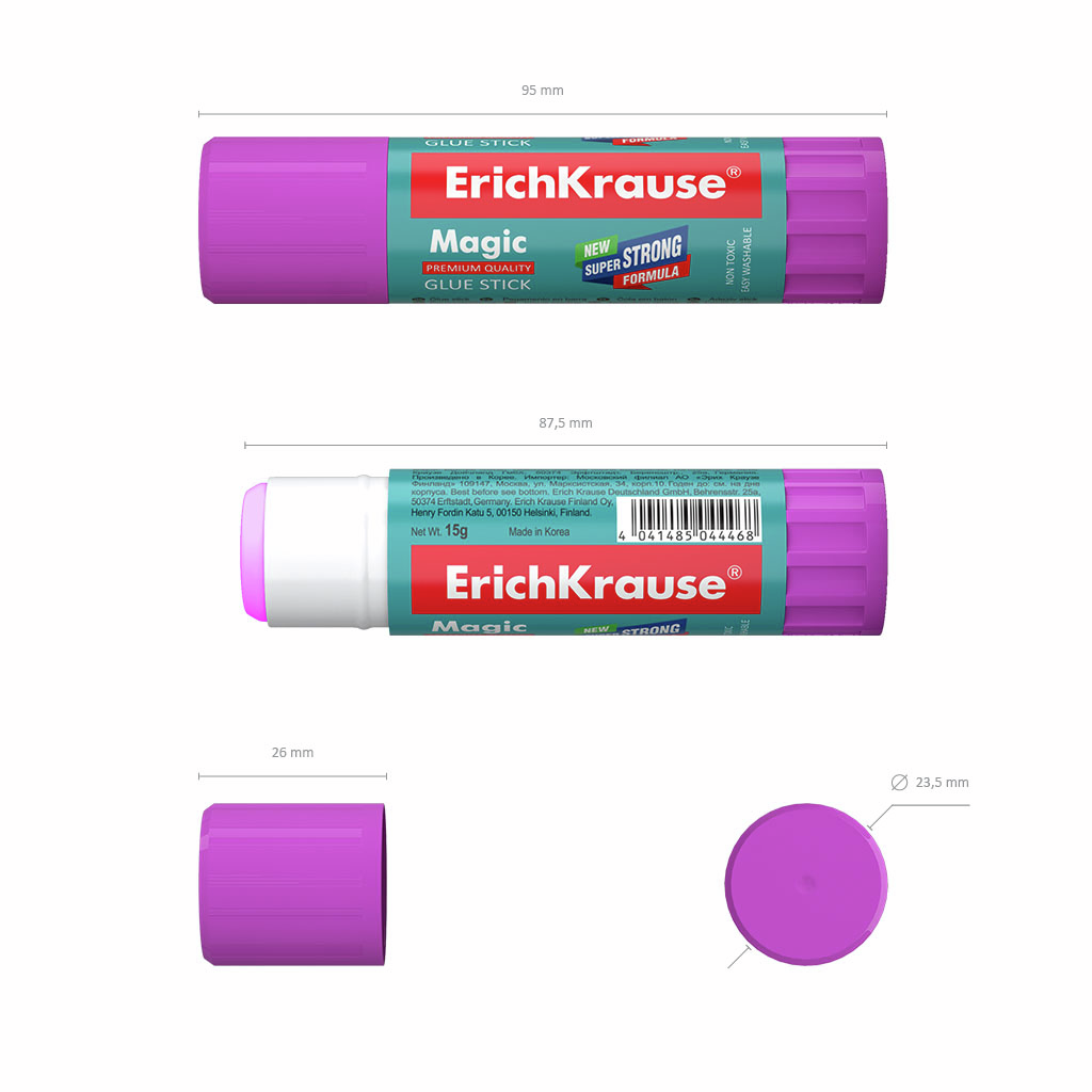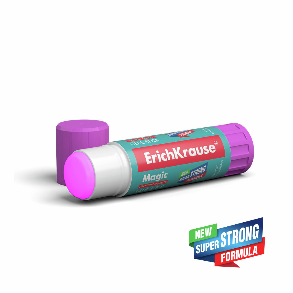 Клей-карандаш Magic c новой суперсильной формулой на PVP основе с экономичным расходом, максимально быстрым и надежным склеиванием. При нанесении оставляет цветной след, который постепенно исчезает. Временный слой клея виден на бумаге, позволяя определить точное место его нанесения. Легко смывается водой. Не токсичен. Не содержит растворителя. Морозостоек. Подходит для бумаги, картона и ткани.