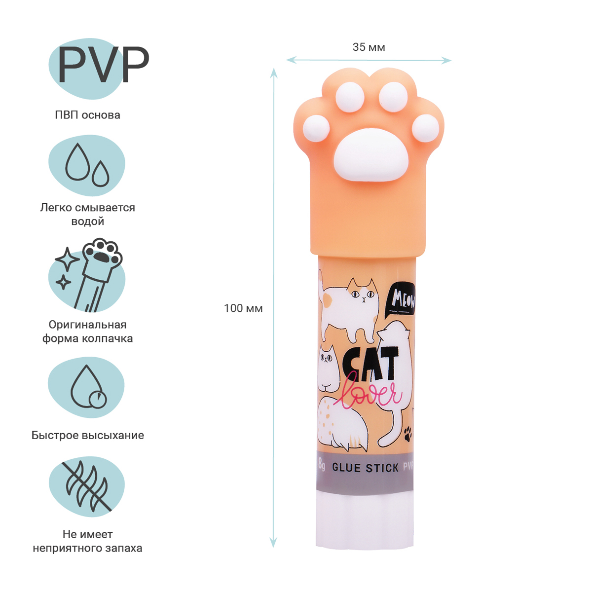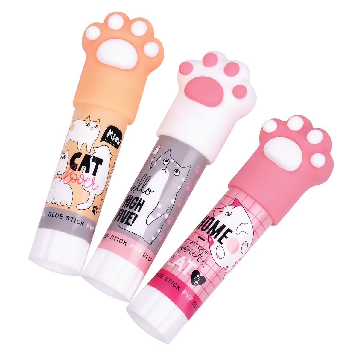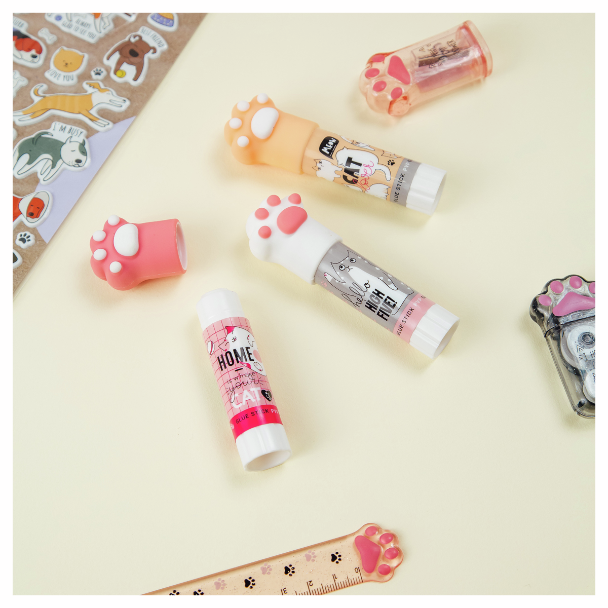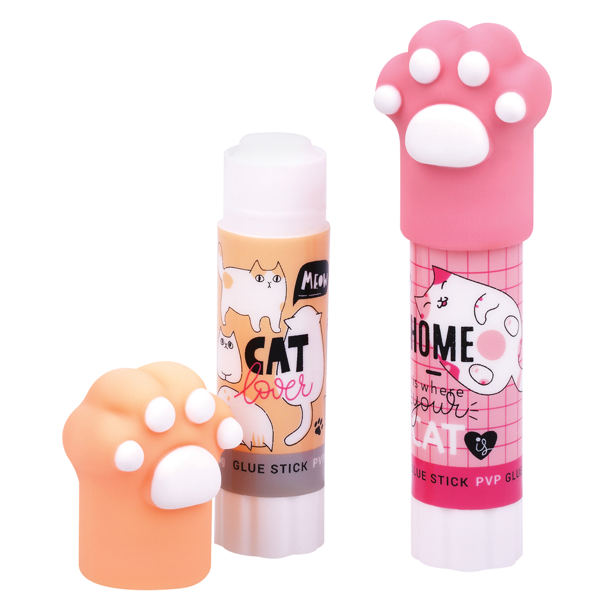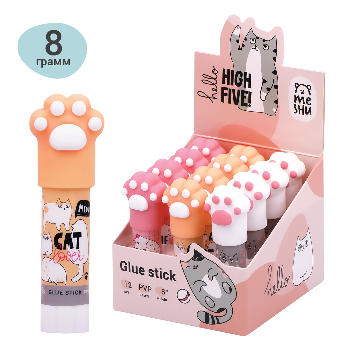 Клей-карандаш Meshu Paw, 8г – универсальный помощник для работы в офисе, школы и детского творчества. Формула на основе ПВП позволяет склеивать бумагу, картон, фотографии. Клей-карандаш белого цвета нетоксичен и легко смывается водой, морозоустойчив. При работе быстро высыхает и не имеет неприятного запаха. Круглый привлекательный корпус украшают милые топперы в форме кошачьих лапок. Упакован в дисплей-бокс.