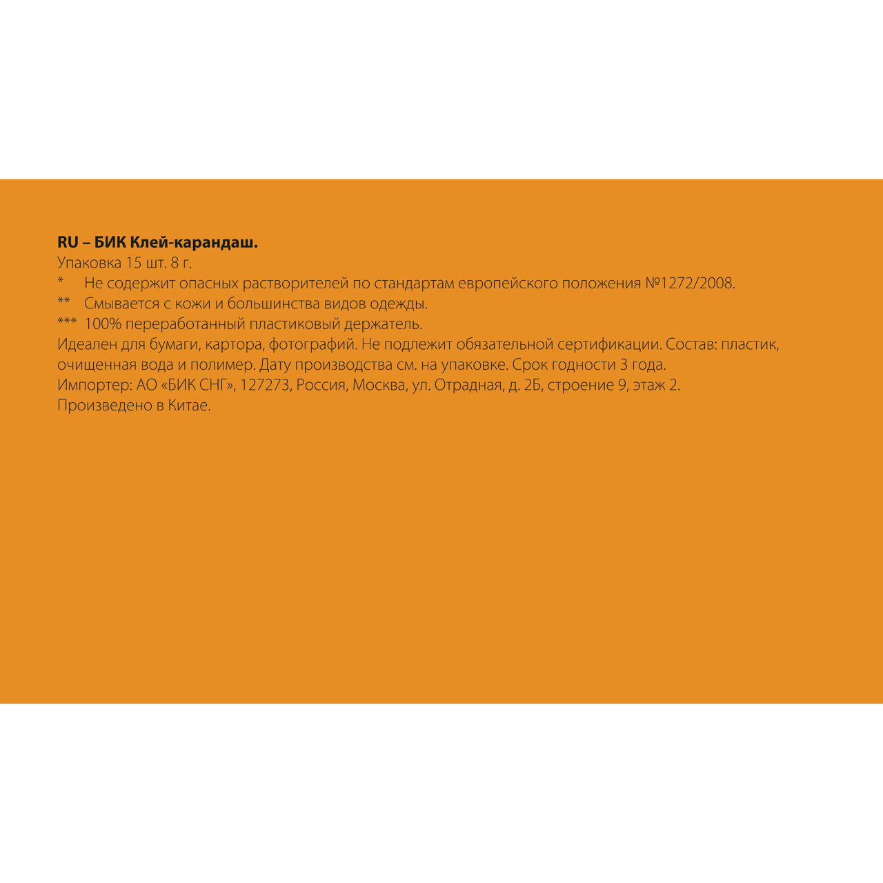 - Комплектация Клей-карандаш - 1 шт.