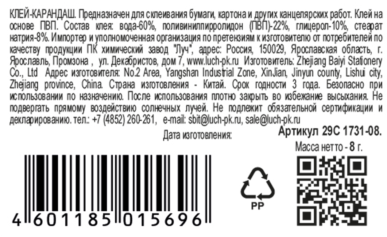 Клей-карандаш Классика предназначен для склеивания бумаги, картона, фотобумаги. Клей изготовлен на основе ПВП (поливинилпирролидона) с добавлением глицерина. Гарантирует максимально быстрое и надёжное склеивание. Клеевой стержень прочно закреплен у основания. Герметичная упаковка предотвращает клеевой стержень от высыхания. Не имеет неприятного запаха. Он удобен в работе, не оставляет пятен. Морозостойкий и теплостойкий.