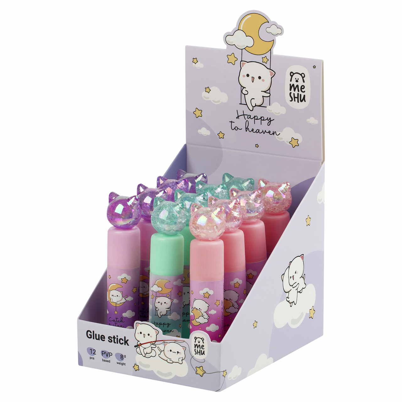 Клей-карандаш ПВП Meshu с топером Crystal Kitten - универсальный помощник для работы в офисе, школы и детского творчества. Предназначен для склеивания всех видов бумаг, картона, фотографий. Бумага не увлажняется, не деформируется, проклеивается ровно, без комков и волокон. Не токсичен, не содержит растворителей. Надежный колпачок предохраняет от высыхания.
