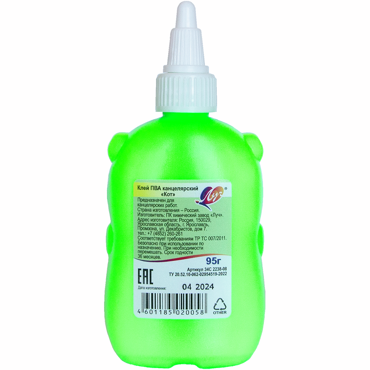 Клей ПВА канцелярский в флаконе формы забавной фигурки отлично подходит для хобби и занятий творчеством в игровой форме дома, в детском саду и школе. Предназначен для склеивания бумаги, картона, дерева, ткани. Пластиковый дозатор обеспечивает точное нанесение и экономный расход.