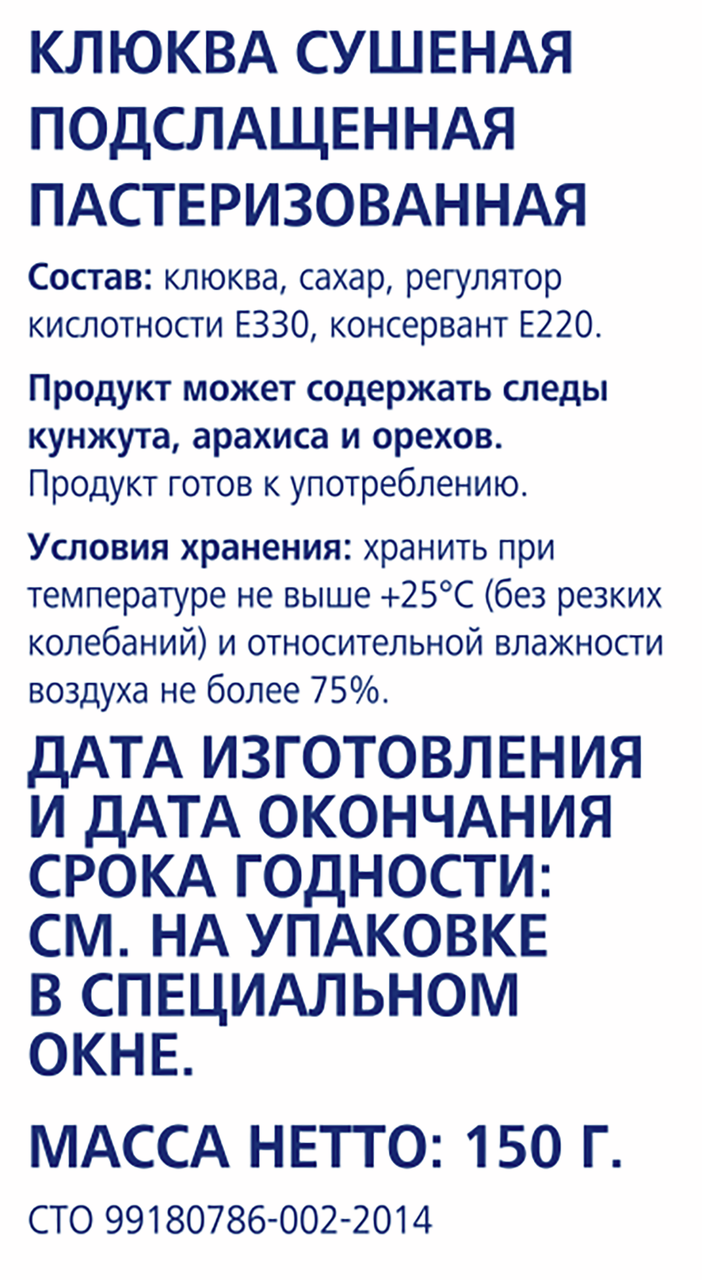 Клюква METRO Chef Сушеная, 150 г сохраняет свои полезные вещества свежего продукта. Это источник витаминов А, В, С, фолиевой и никотиновой кислот, дубильных веществ и пектинов. Она нормализует пищеварение, выводит лишнюю жидкость из организма, при этом низкокалорийна и подходит для диетического питания. Витаминный состав способствует укреплению иммунитета, профилактирует сердечно-сосудистые заболевания, снижает уровень сахара в крови. Сушеная ягода используется для приготовления компотов, разнообразных десертов. METRO Chef – это популярный бренд, который принадлежит торговой сети Метро. В ассортимент входят такие категории товаров, как молочные продукты, мясная гастрономия, соусы и приправы, замороженные фрукты и ягоды, рыба и морепродукты и многое другое. Выпуская продукцию под собственными торговыми марками METRO, мы стремимся максимально удовлетворить потребности наших клиентов. Наша цель – понять, какой ассортимент для них актуален и предложить его по привлекательной цене. Мы также внимательно изучаем тенденции рынка, чтобы быть в курсе последних трендов и своевременно предлагать решения под собственными торговыми марками в соответствии с ними.