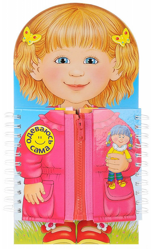 Книжка-тренажер "Одеваюсь сама" поможет ребенку развить мелкую моторику, речевые навыки и самостоятельность.Ваш малыш научится:- завязывать шнурки- застегивать молнии, пуговицы, липучки и пряжки.
