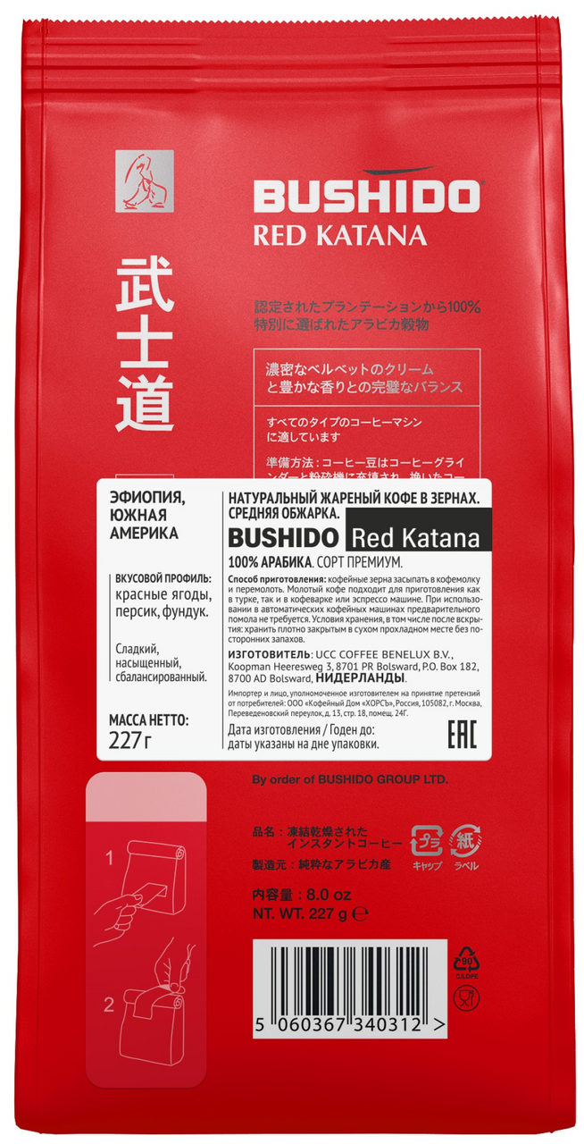 Кофе Bushido Red Katana в зернах, 227г