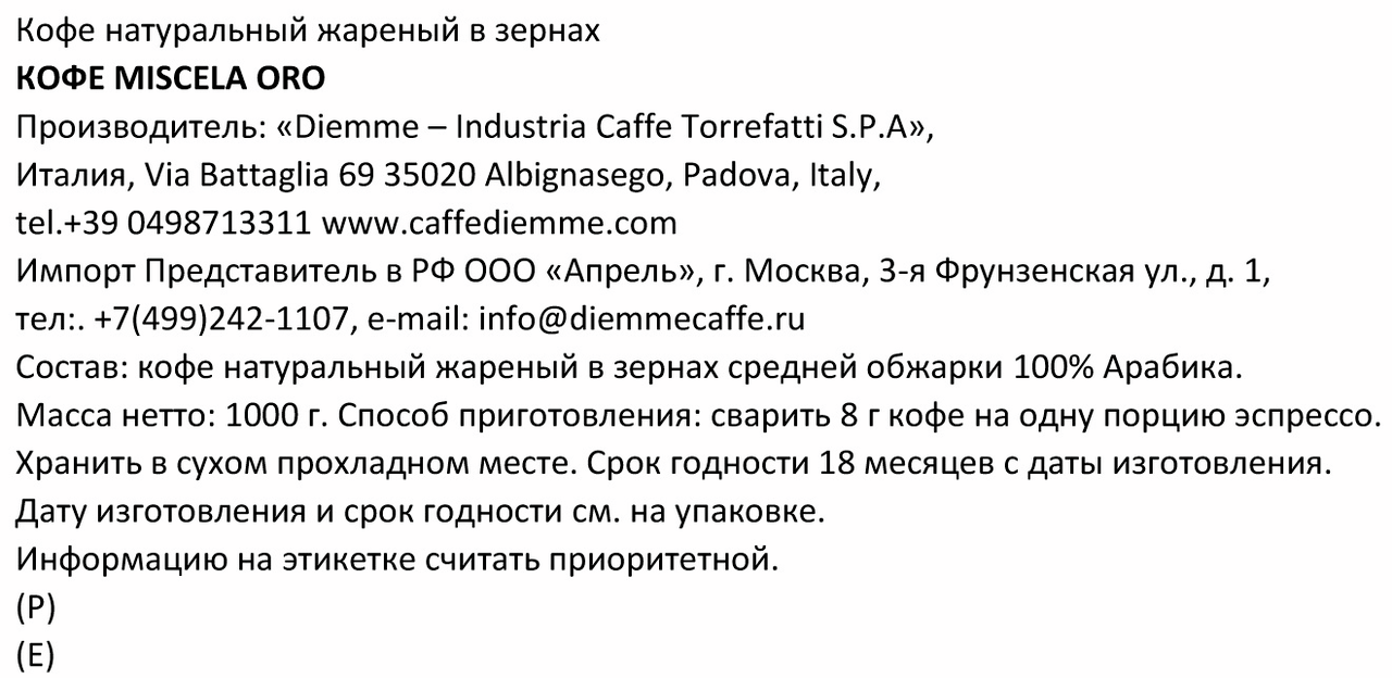 Это эталон настоящего итальянского эспрессо превосходного качества. Для его создания использовалась только отборная арабика с удивительных плантаций. Одна из них выращивается на высокогорной плантации Альто Могиано в Бразилии, где лучшие природные факторы дарят кофейным зернам ярчайшие характеристики. Его отличительные черты - это насыщенный вкус с легкой кислинкой и отчетливый оттенок сладкой карамели. Этот кофе завоевал популярность во всем мире. Также здесь присутствует арабика со склонов горы Килиманджаро. Кофе с этой плантации придает напитку насыщенный вкус и идеально сочетается с другими сортами. И великолепная индийская арабика. Она очаровывает сладким вкусом с утонченным ароматом поджаренного хлеба и легкими цветочно-фруктовыми нотками. Кофе, выращенный на юге Индии, также считается одним из лучших в мире. Кофе в зернах Diemme Caffe Miscela Oro подарит вам изысканный эспрессо с плотной бархатной консистенцией, насыщенным ароматом цветочных нот и приятным, сладким шоколадно-ванильным акцентом. Слегка заметная кислинка придаст ему пикантности. Приготовить качественный напиток вы сможете в кофемашине, кофеварке или турке. Diemme Caffe Miscela Oro прекрасно сочетается с молоком, ярче выражая карамельные нотки.