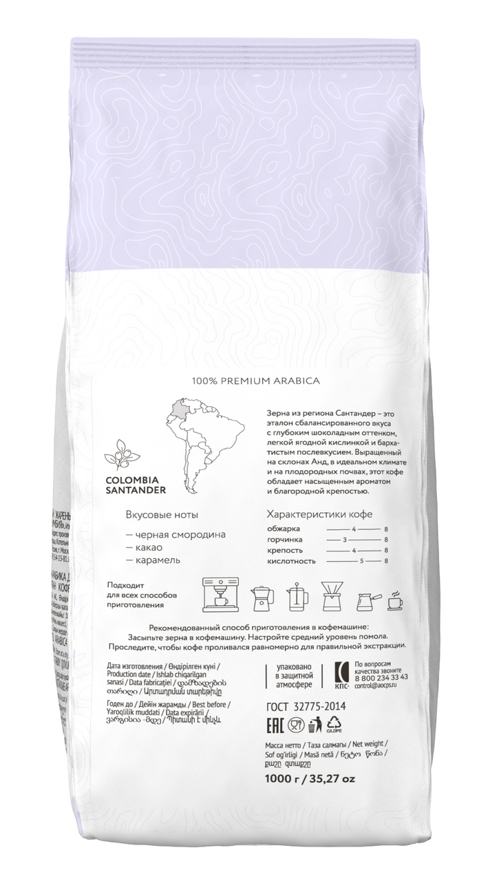 Кофе Lebo Colombia Santander зерновой, 1кг