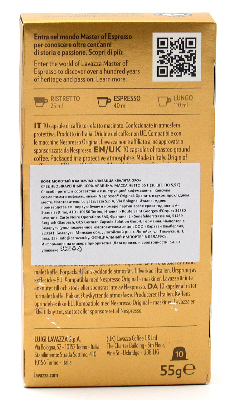 Lavazza Qualita Oro - 100% Арабика, легендарный кофе, теперь и в капсулах для кофемашин Nespresso. Попробуйте и почувствуйте утонченный вкус с нотками цветов и фруктов. Подходит для приготовления эспрессо, американо, капучино и латте. Нежный и сладковатый бленд с богатым и устойчивым ароматом. Самый популярный купаж Lavazza среди россиян и жителей Северной Европы благодаря уловимым цветочным и фруктовым ноткам во вкусе. Золотой стандарт аромата и вкуса.