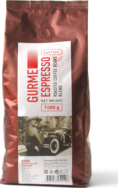 Кофе КОФЕЙНЫЙ ДОМ ГУРМЕ GURME ESPRESSO Sunrise натуральный жареный, 1 кг