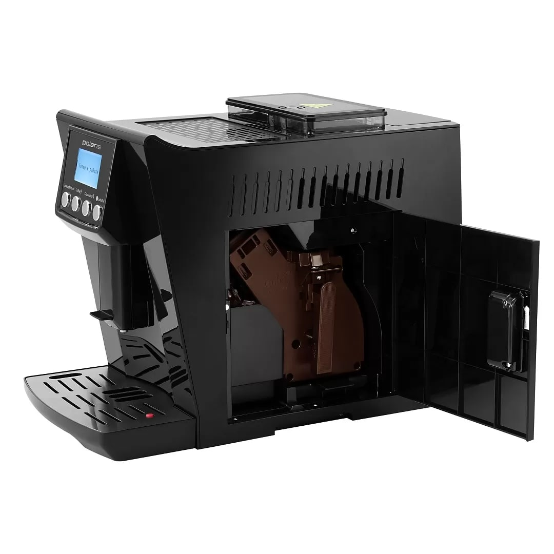 Кофемашина Polaris Pacm 2045AC – это современный прибор, который просто необходим всем любителям ароматного свежезаваренного кофе. Его можно приобрести для дома, установить в офисе или использовать в заведениях общественного питания (барах, кафе и пр.). Эта модель удобна и проста в эксплуатации. Она может за считаные минуты приготовить чашечку вкусного крепкого кофе. Объема резервуара для воды у нее 2 л. Его хватит для приготовления нескол��ких порций подряд. Аппарат может приготовить несколько вариантов напитка: эспрессо, капучино, лунго или латте. Есть программа Горячее молоко и автоматический капучинатор. Можно регулировать температуру напитка и включить подогрев чашки. Крепость напитка и его объем можно отрегулировать в соответствии с собственными вкусами. Можно выбрать вид кофе (молотый или зерновой). Зерна перемелет встроенная кофемолка. Контейнер вмещает 250 г кофе. Напитки готовятся под давлением 20 Бар. Кофемашина может работать в режиме энергосбережения и отключается автоматически. У нее есть опция декальцинации и регулировка жесткости воды. В комплект входит поддон для сбора капель.