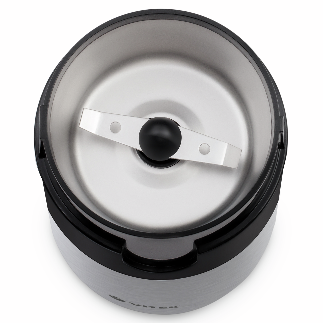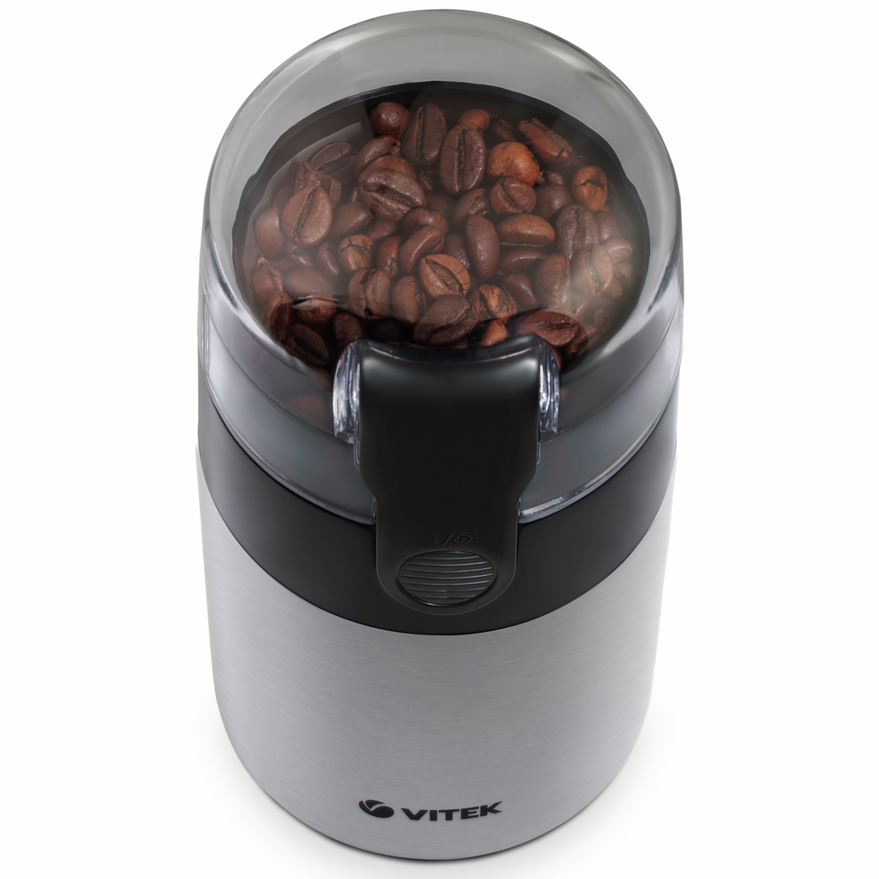 Кофемолка Vitek 1540 в корпусе из высококачественного пластика предназначена для измельчения различных зерен и характеризуется простотой эксплуатации. Для активации устройства достаточно нажать на переключатель и удерживать его в течение всего процесса. Модель рассчитана на 30 секунд использования, после чего требует перерыва в работе. Надежный ротационный нож из нержавеющей стали и мощность 120 Вт способствуют высококачественному помолу кофейн��х зерен, степень которого зависит от продолжительности эксплуатации. Емкость устройства позволяет насыпать до 40 г ингредиентов за одну загрузку. После каждого использования нож и чашу следует очищать мягкой щеткой или сухой материей. Кофемолка Vitek VT–1540 удобна в хранении за счет предусмотренного в конструкции отдела для шнура. При повороте по часовой стрелке ручки, расположенной в нижней части корпуса, провод с вилкой европейского стандарта легко убирается внутрь модели. Устройство работает от сети напряжением 220–240 В и рассчитано на длительный срок эксплуатации при ежедневном использовании в бытовых условиях.