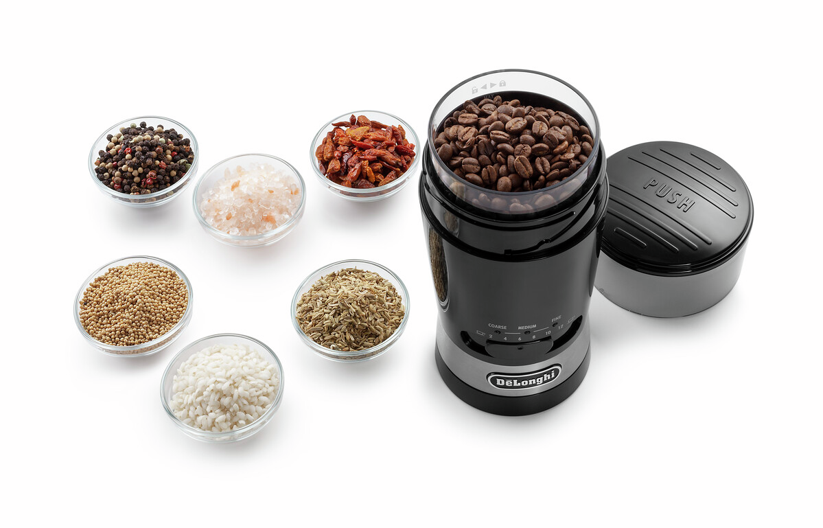 Кофемолка данной модели оснащена ротационными ножами из нержавеющей стали, чашей, объемом 90 г, облегченным корпусом. Благодаря высокому качеству ножей и мощности 170 Вт, устройство без труда справится с помолом кофейных зерен, орехов, крупами и зерном.Кофемолка имеет вес 1 кг и небольшие габариты (22,3x11,1x11,1 см).