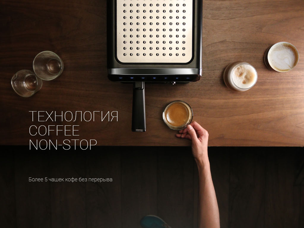 Итальянская помпа с давлением 15 бар. Автоматический капучинатор. Сенсорная панель управления. Защита от перегрева. Съемный поддон для сбора капель. Съемный резервуар для воды (1.8 л) Трафареты для рисунков на молочной пене. Мерная ложка-уплотнитель в комплекте. Стальная платформа для подогрева чашек. Съемный фильтр. Мощность 1400 Вт. Корпус из нержавеющей стали. Система Coffee Non-Stop – более 5 чашек кофе без перерыва. Панель управления с технологией Glass Touch. Съемная насадка для молока – подходит для посудомоечных машин! Резервуар для молока объемом 0.5л