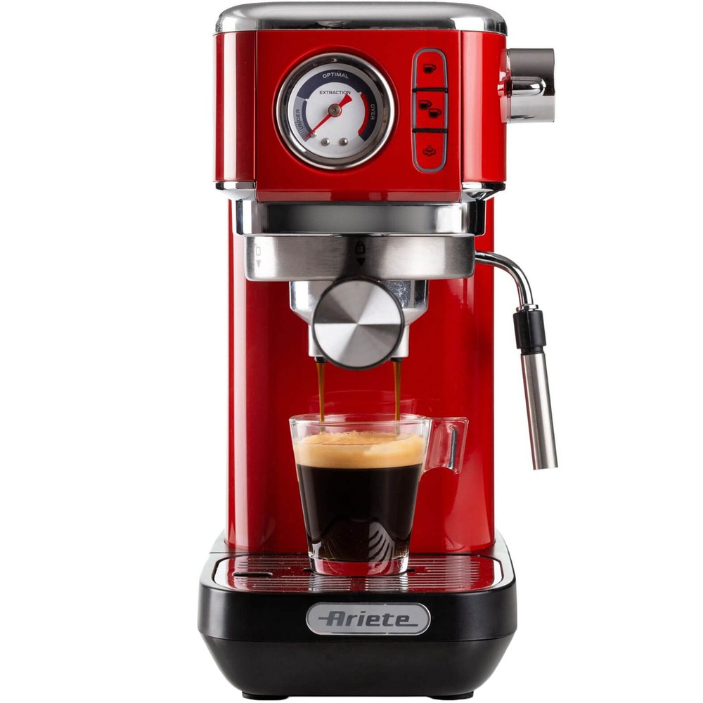 Кофемашина Ariete Moderma 1381 рожковая — кухонный прибор, который позволит приготовить ароматный кофе. Компактные размеры устройства делают его удобным для размещения на любой кухне. Кофемашина подходит для приготовления как молотого кофе, так и капсул. Высота поддона регулируется в зависимости от того, какая чашка будет выбрана. Благодаря манометру можно понять, сбалансированы ли параметры воды, количество кофе и степень помола. Для любителей тонких ароматов в кофемашине предусмотрен диспенсер горячей воды для приготовления чая, настоев и травяных чаев.
