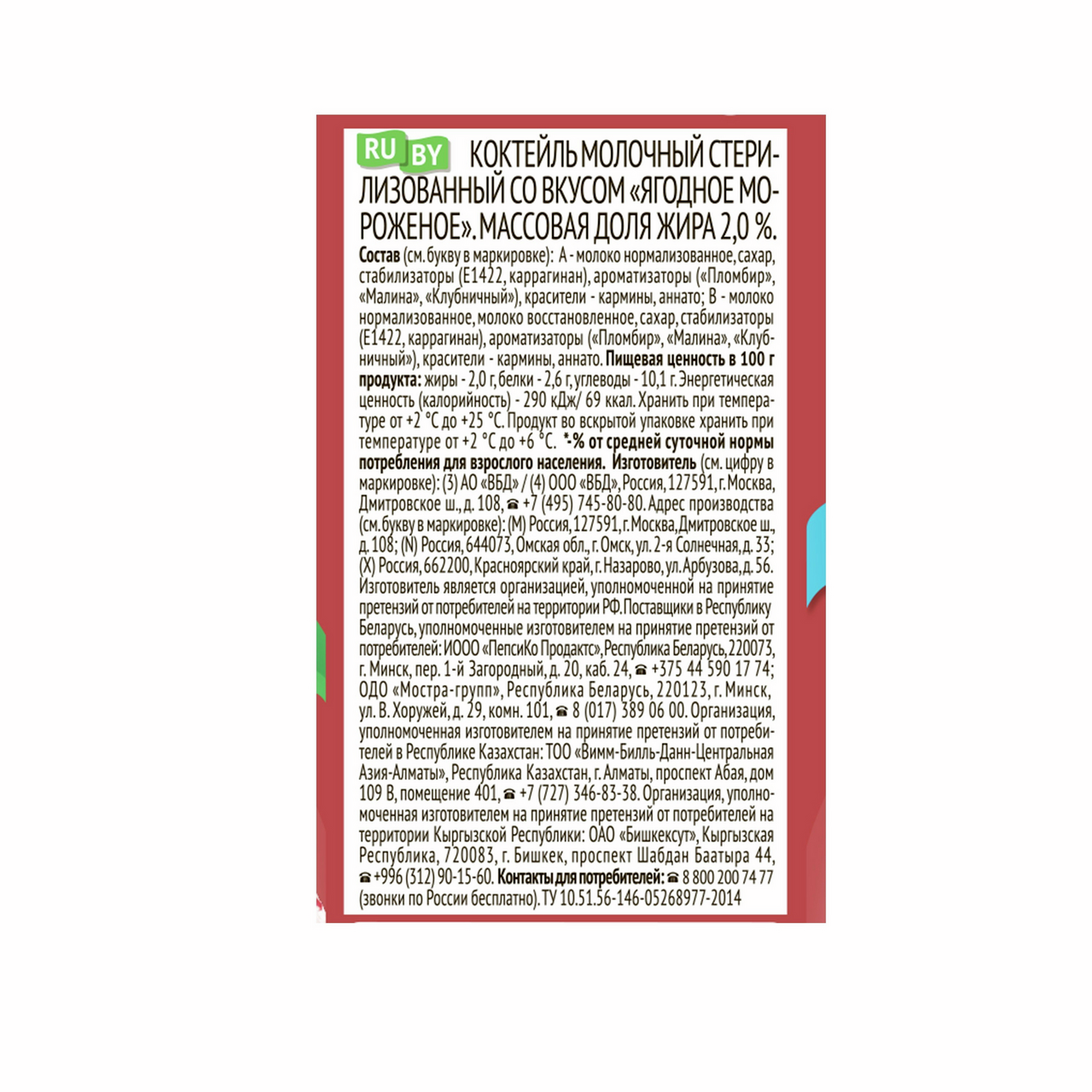 - Тип Молочный коктейль