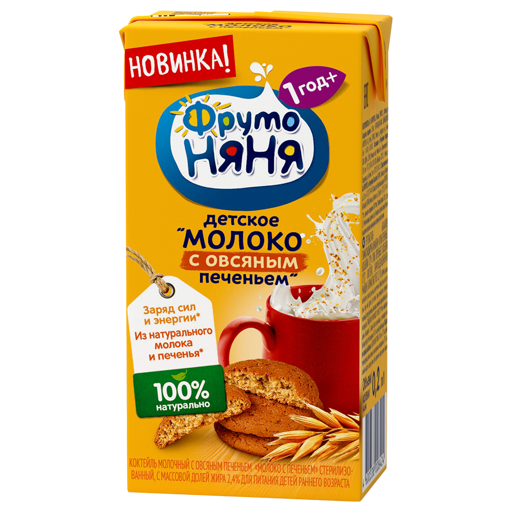 Коктейль молочный ФрутоНяня с овсяным печеньем 2.5%, 200мл