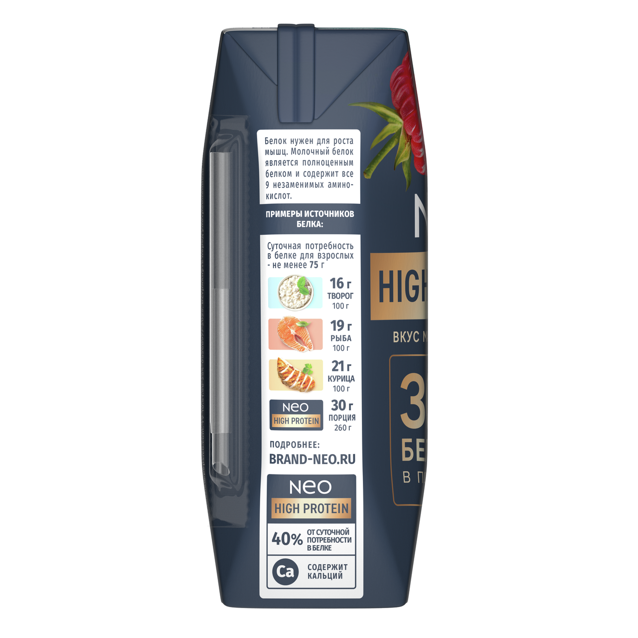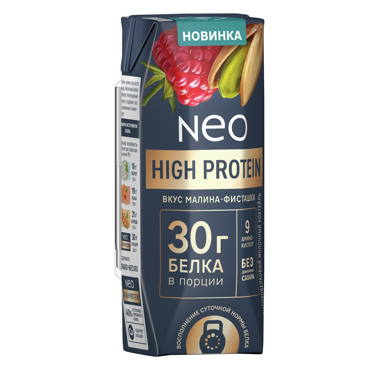 Коктейль молочный Neo High Protein обезжиренный, высокобелковый со вкусом Малина-фисташка для восполнения суточной нормы белка без добавления сахара, с кальцием и с 9 аминокислотами. Белок - это незаменимый элемент для спортивной жизни, который способствует росту мышечной массы: в 1 порции коктейля содержится 30г протеина - это 40% от суточной нормы белка. Коктейль Neo с протеином - это вкусный перекус для употребления до и после тренировки.